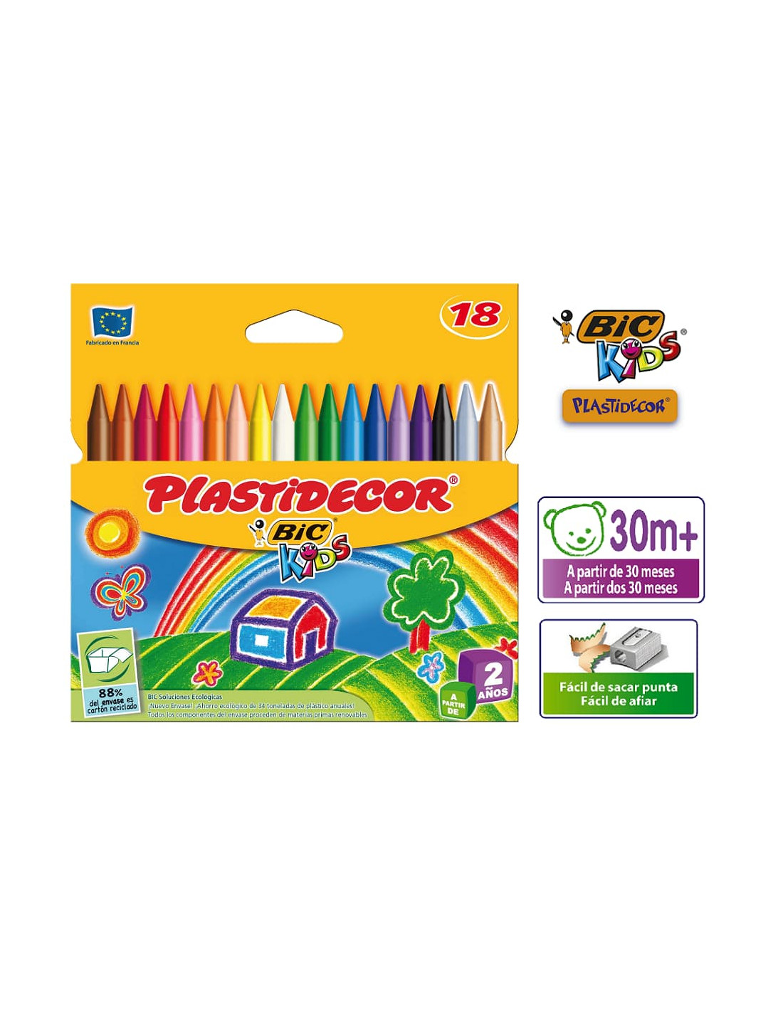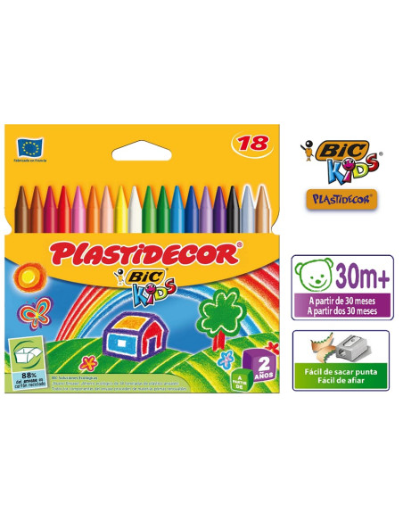 Caja con 18 ceras plásticas PLASTIDECOR colores surtidos.
