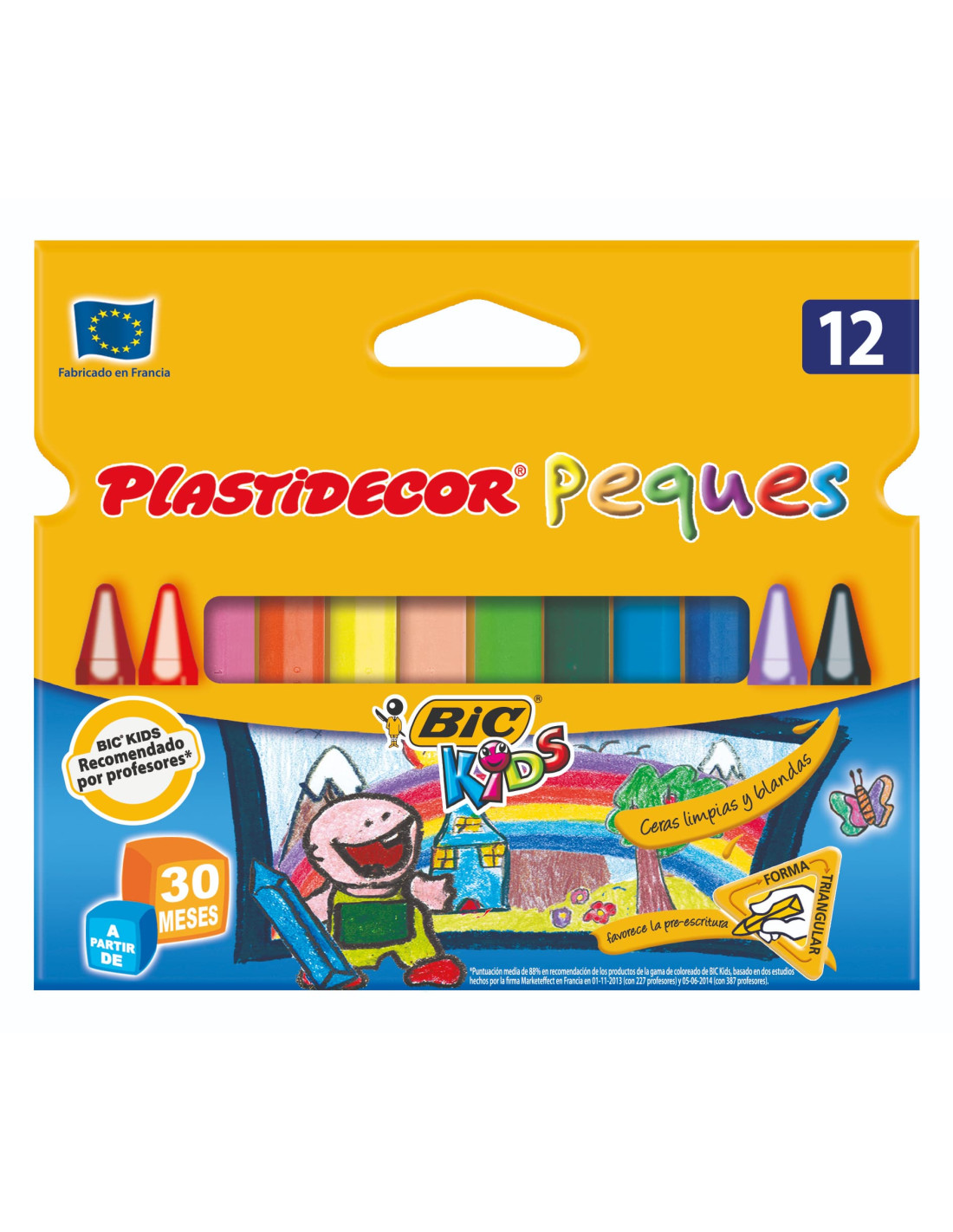 Caja con 12 ceras plásticas triangulares PLASTIDECOR PEQUES colores surtidos.