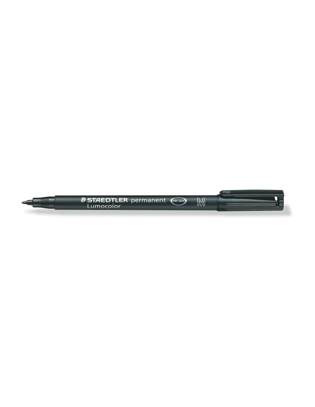 Rotulador permanente STAEDTLER LUMOCOLOR. Punta M con trazo aprox. 1.0 mm. Para escribir sobre papel, cartulina, cartón, film, plástico, metal, transparencias, poliestireno, cristal, madera, piel, piedra, CDs. Color brillante con resistencia al emborronamiento. Tinta antisecado libre de Xileno y Tolueno. Sistema AIRPLANE SAFE: equilibrio automático de la presión de la tinta para evitar pérdidas durante el vuelo.