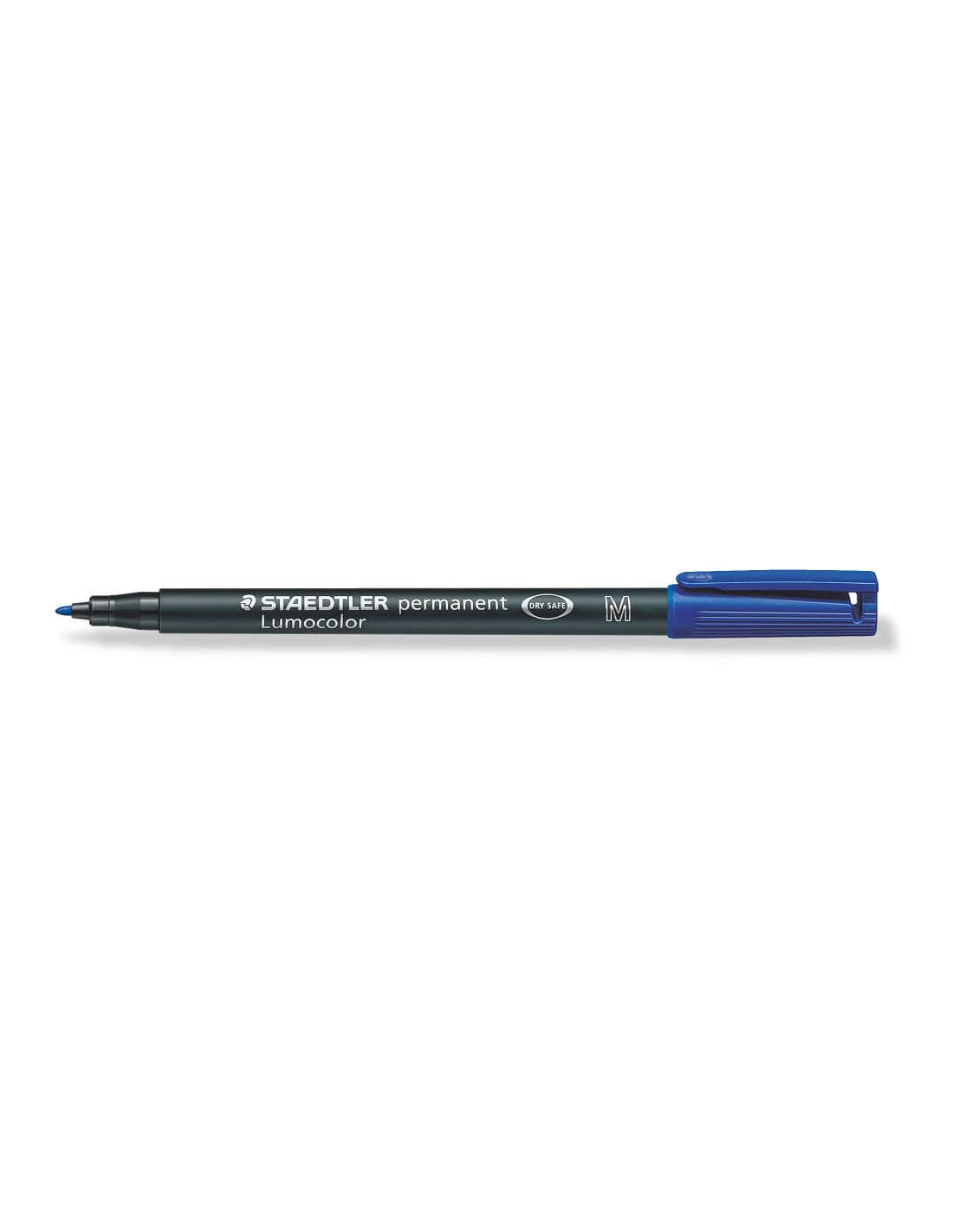 Rotulador permanente STAEDTLER LUMOCOLOR. Punta M con trazo aprox. 1.0 mm. Para escribir sobre papel, cartulina, cartón, film, plástico, metal, transparencias, poliestireno, cristal, madera, piel, piedra, CDs. Color brillante con resistencia al emborronamiento. Tinta antisecado libre de Xileno y Tolueno. Sistema AIRPLANE SAFE: equilibrio automático de la presión de la tinta para evitar pérdidas durante el vuelo.