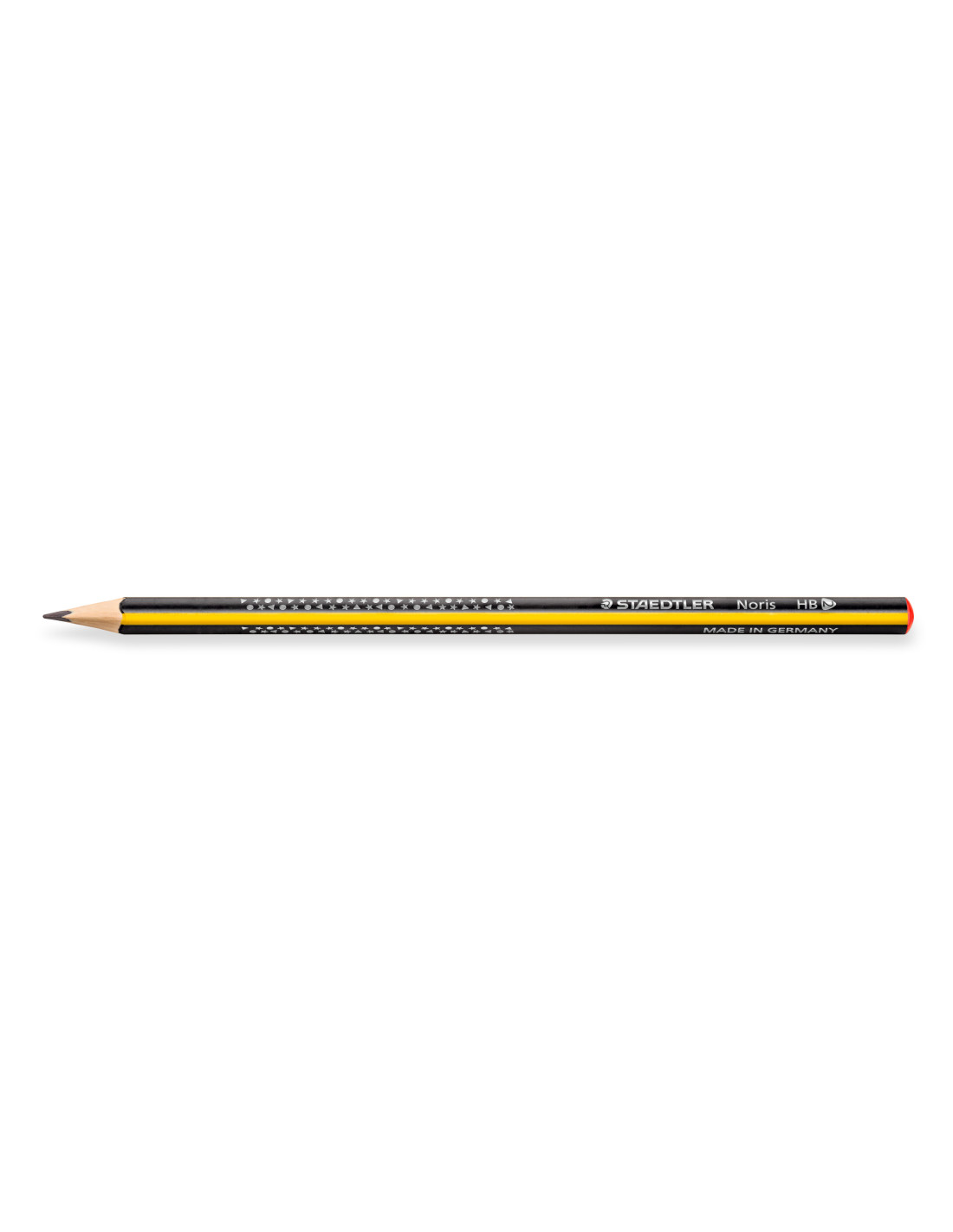 Caja 12 lápices grafito STAEDTLER NORIS WOPEX 183 SLIM. Cuerpo triangular ergonómico a rayas amarillas y negras con diseño de estrellas. Superficie suave y alta resistencia a la rotura. Mina graduacción HB, 2 mm. Fabricado con material ecológico WOPEX. Contenido en madera certificada PEFC, procedentes de bosques de gestion sostenible.