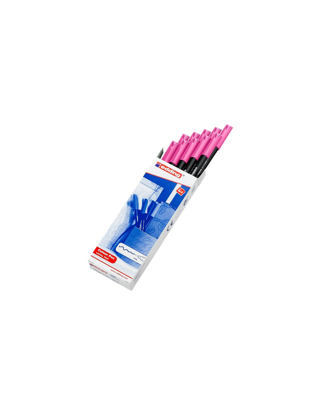 Caja con 10 rotuladores para escritura EDDING 1200 unicolor. Punta redonda de fibra muy resistente. Trazo 1.00 mm. Ideal para escribir, realizar bocetos y diseños sobre papel de color claro. La tinta a base de agua es soluble en agua antes del secado y no traspasa el papel. Capuchón ventilado de seguridad anti ahogamiento. Disponible en 24 colores.