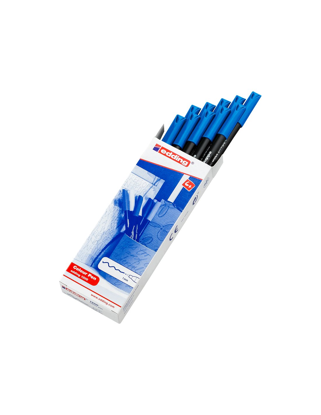 Caja con 10 rotuladores para escritura EDDING 1200 unicolor. Punta redonda de fibra muy resistente. Trazo 1.00 mm. Ideal para escribir, realizar bocetos y diseños sobre papel de color claro. La tinta a base de agua es soluble en agua antes del secado y no traspasa el papel. Capuchón ventilado de seguridad anti ahogamiento. Disponible en 24 colores.