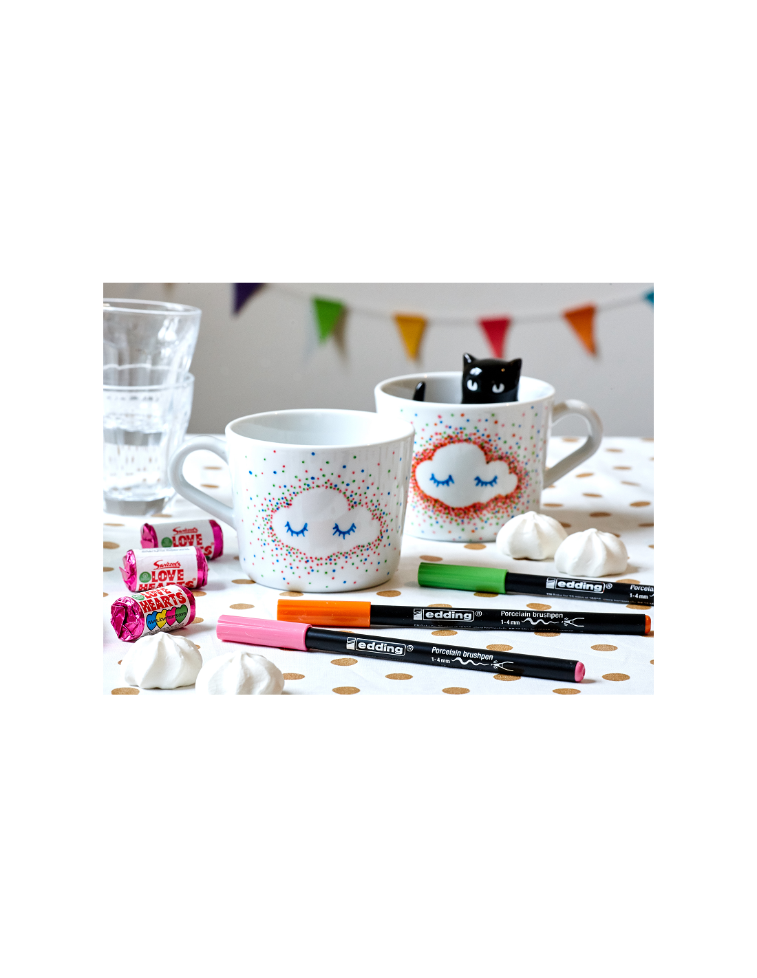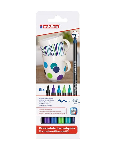 Caja con 6 rotuladores con punta de pincel para porcelana EDDING 4200 colores surtidos FRÍOS.
