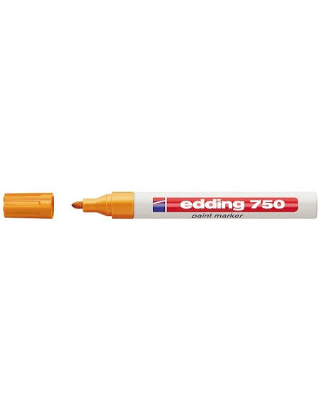 Rotulador de tinta opaca EDDING 750. Punta de fibra redonda muy resistente. Trazo 2-4 mm. Colores especialmente intensos y con 100 cobertura sobre materiales oscuros y transparentes. Marcación de gran cobertura sobre superficies oscuras y lisas con una tinta resistente a los disolventes y al calor. Especialmente indicado para marcar: Vidrio, metal, plástico, madera y goma. Tinta opaca que seca rápidamente, es extremadamente resistente a la acción de la luz, a la intemperie y al desgaste. T