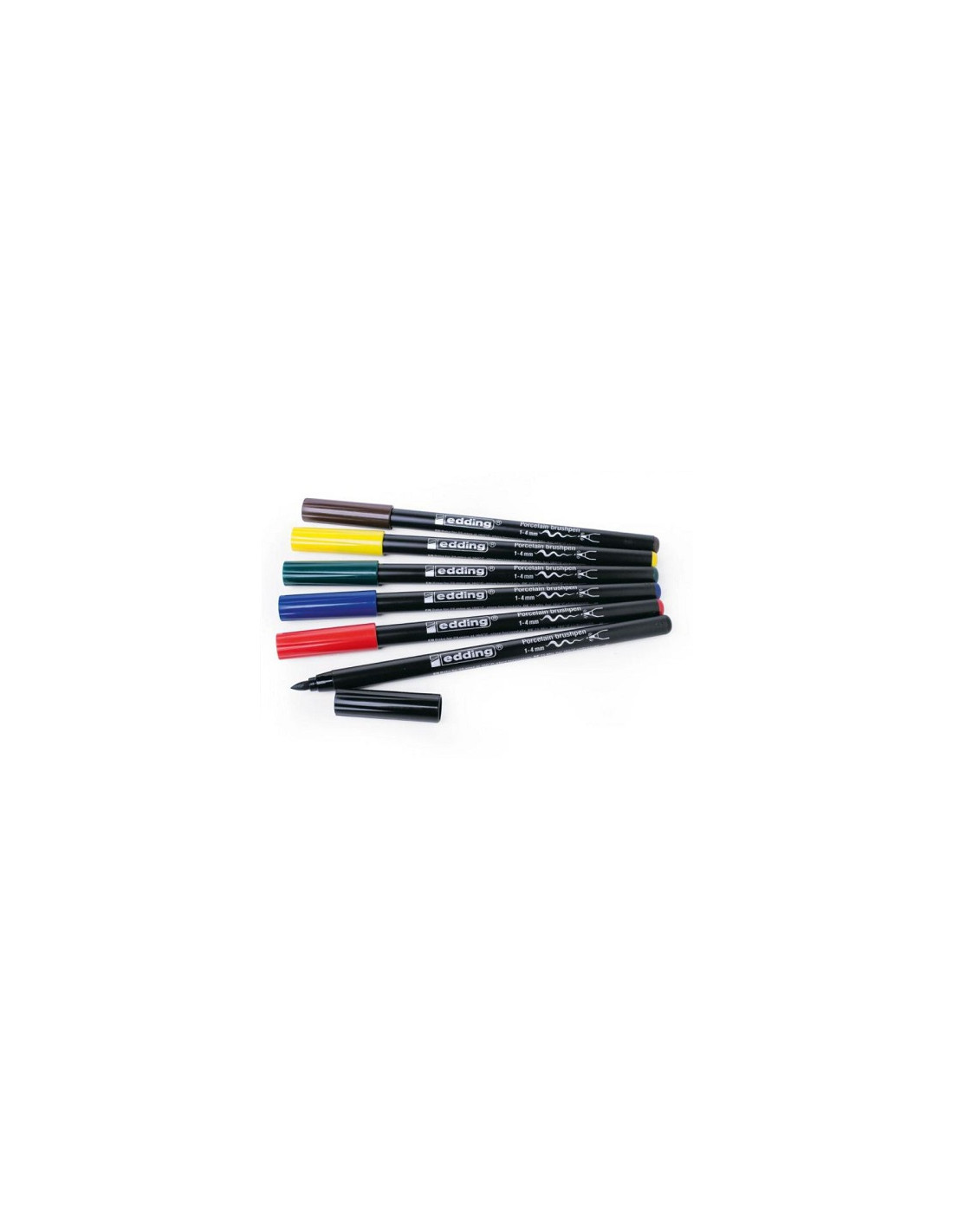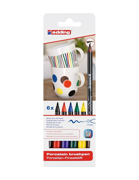 Caja con 6 rotuladores con punta de pincel para porcelana EDDING 4200 colores surtidos BASICOS.