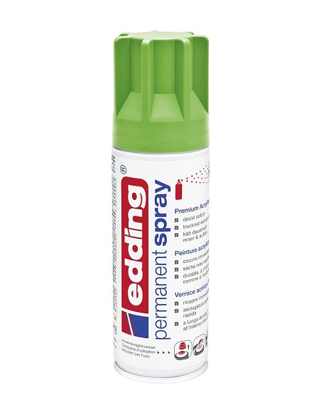 Spray con 200 ml de pintura acrílica premium EDDING. Pintura acrílica permanente de alta calidad para restaurar, renovar y embellecer rápida y fácilmente casi todo tipo de materiales. Ideales para decorar y retocar. Resultados optimos en superficies absorbentes, plástico que admita recubrimiento o poliestireno. Es de secado ultra rápido, resistente a la intemperie y a la acción de la luz. Cabezal rociador con anchura aprox. de 5-6 cm. Disponible en 27 colores mates y 3 colores brillantes.