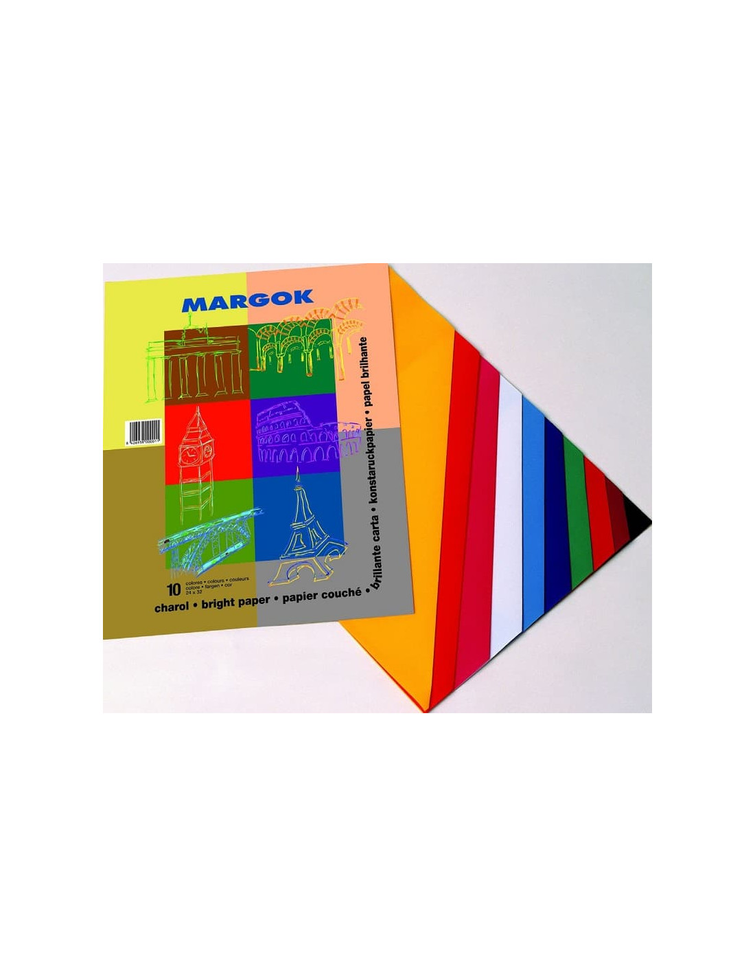 MARGOKBloc de trabajos manuales con 10 hojas papel charol colores surtidos.