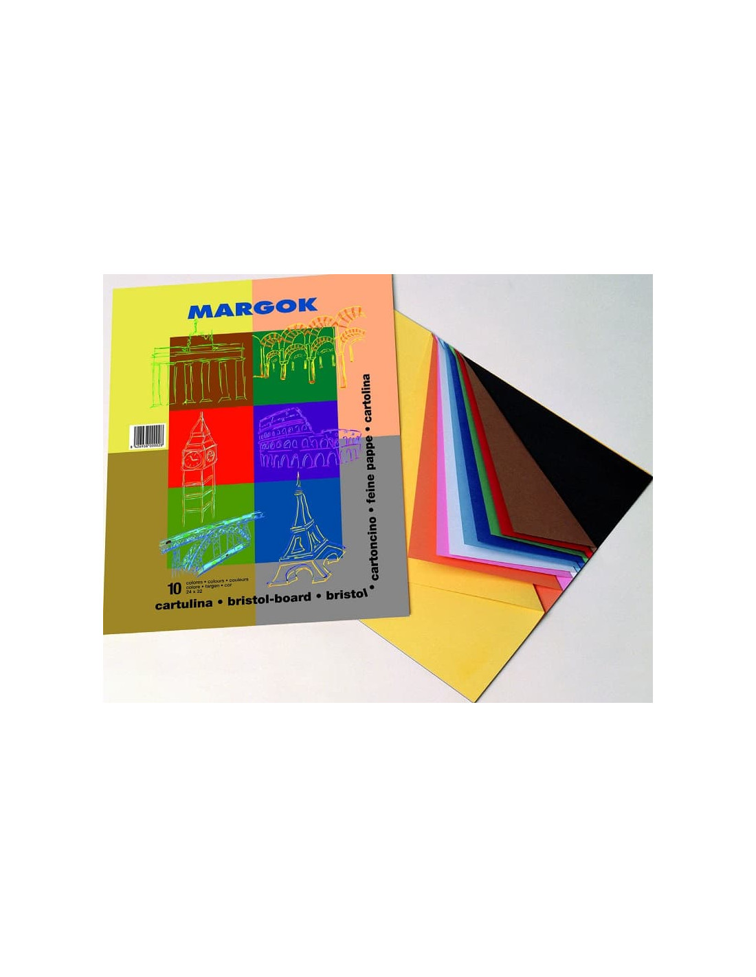 MARGOKBloc de trabajos manuales con 10 hojas cartulina colores surtidos.