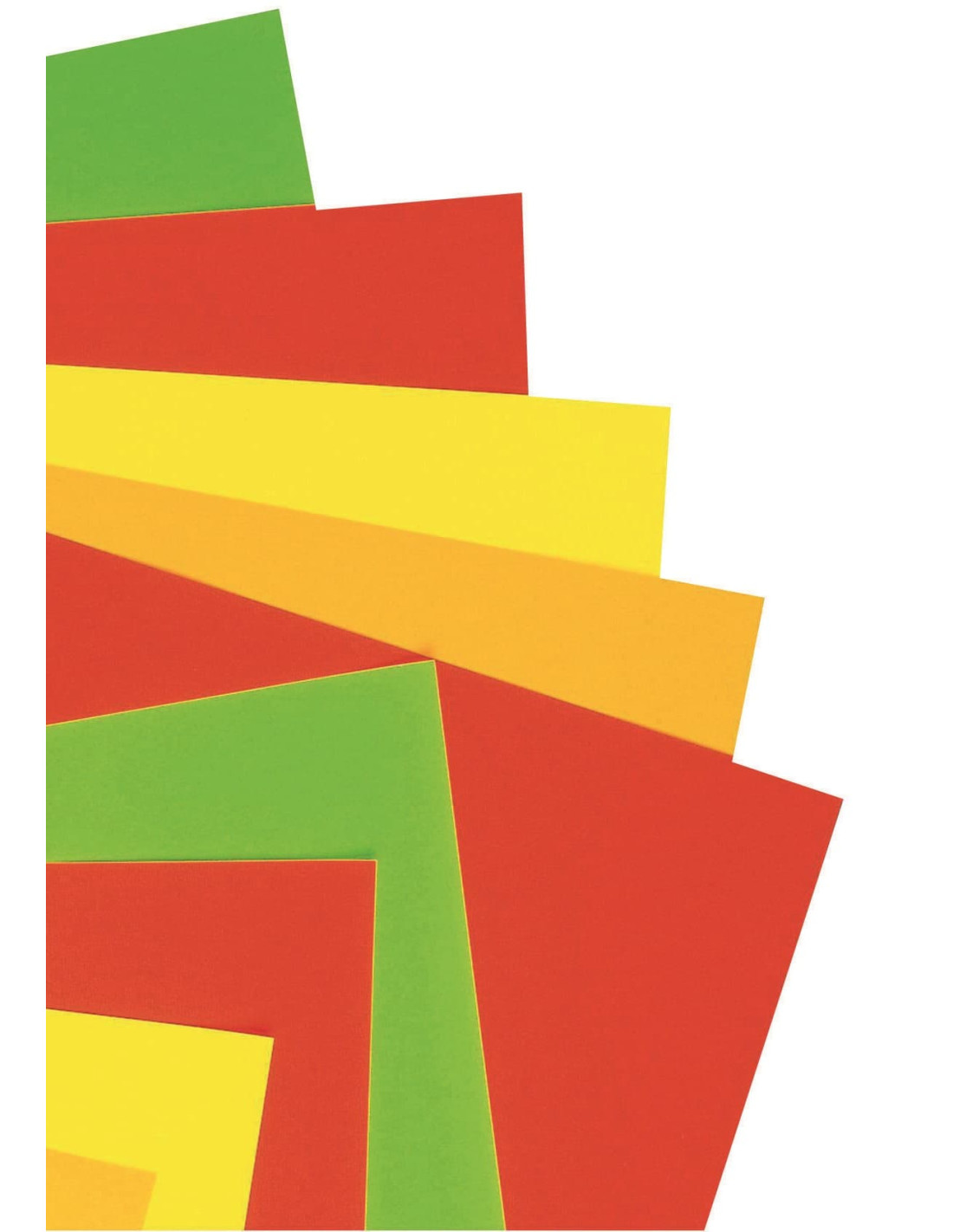 Bolsa con 10 cartulinas FLUORESCENTES. Tamaño: 50x65 cm Gramaje 180 gm Gama de 5 luminiosos colores Ideal para hacer carteles, disfraces, decoraciones, manualidades, etc.