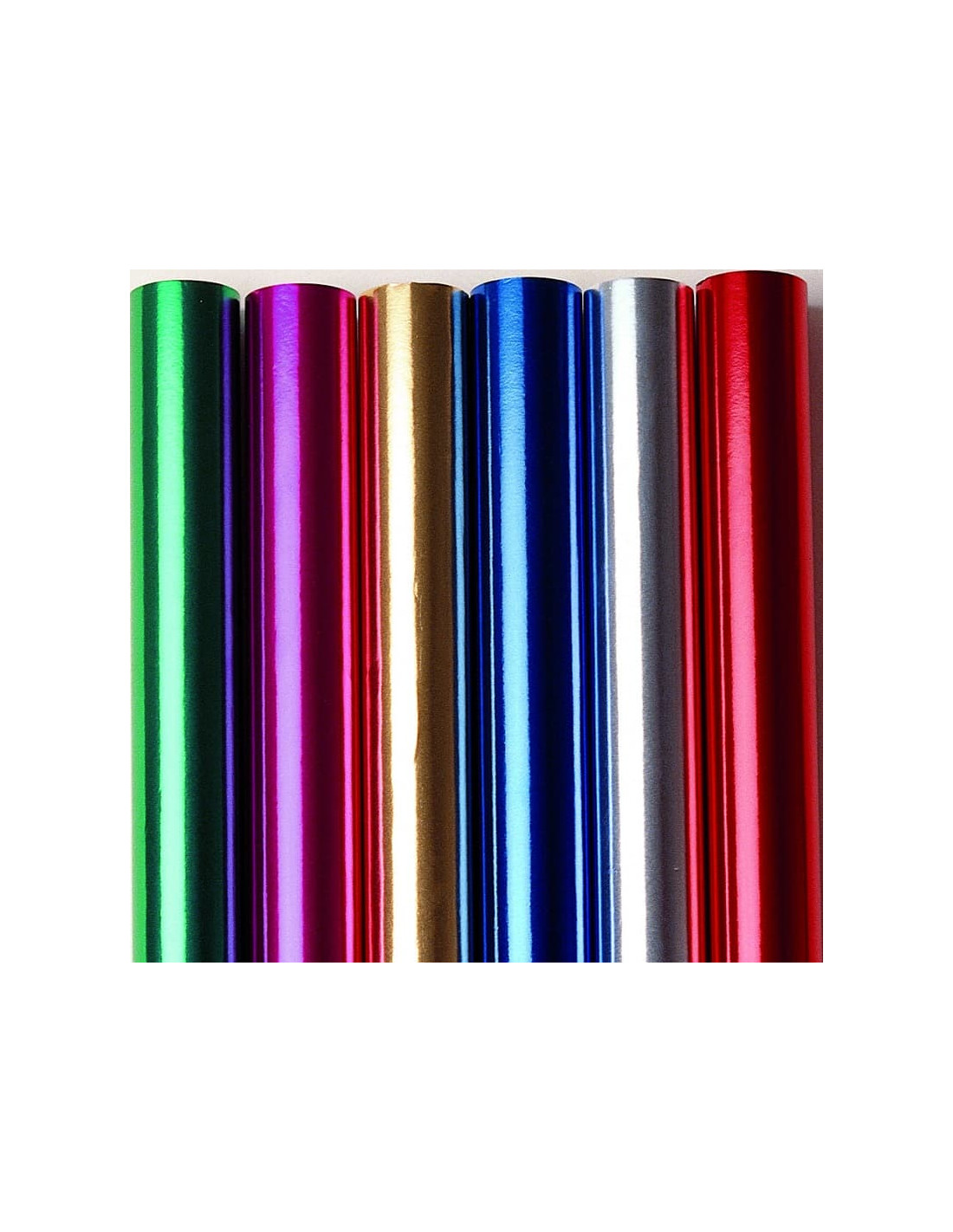 Rollo con 25 hojas microperforadas de papel METALIZADO. Tamaño hoja: 50x65 cm Gramaje 70 gm Gama de 5 brillantes colores Ideal para hacer carteles, disfraces, decoraciones, manualidades, etc.