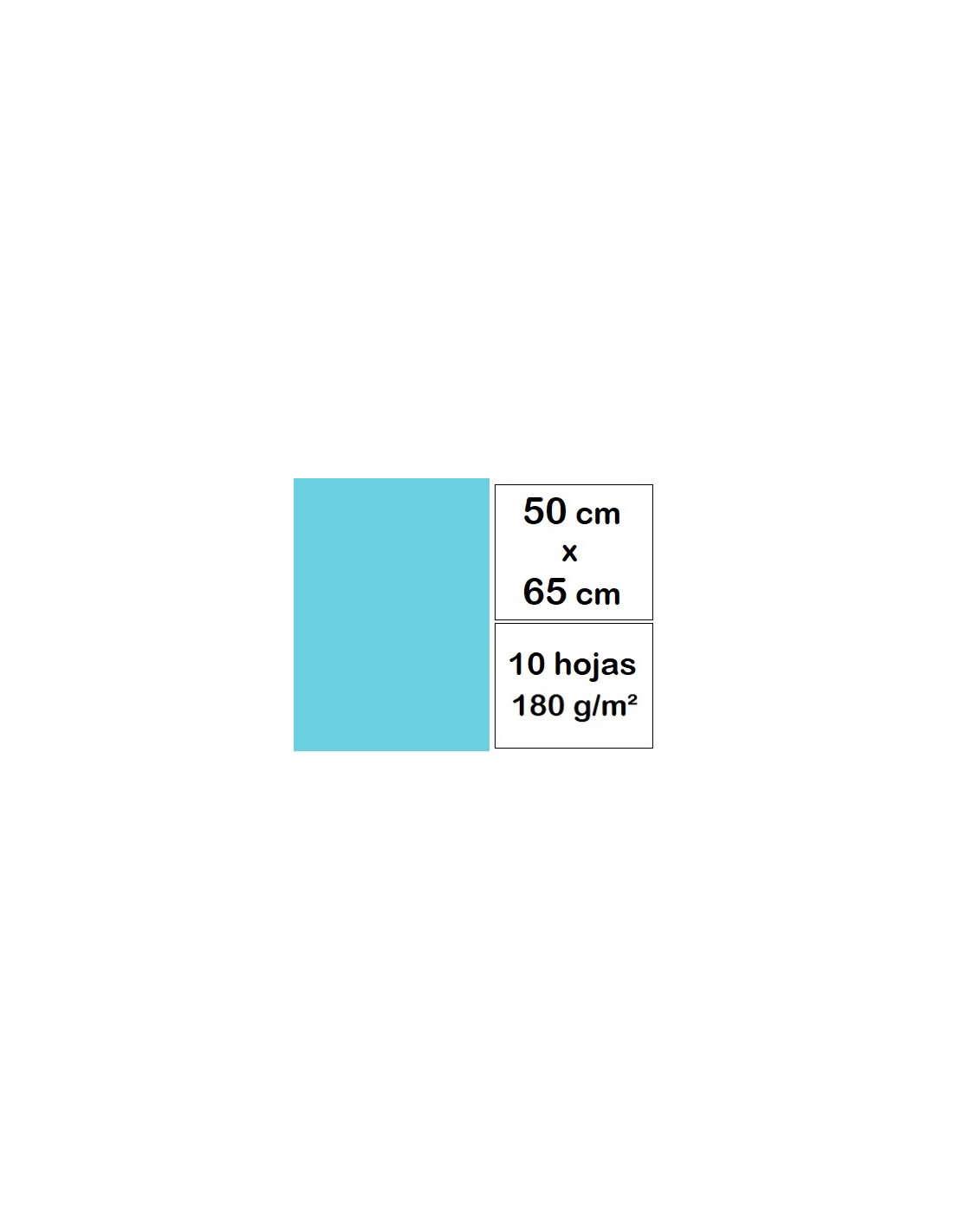 MATERIAL ESCOLAR CARTULINAS 50x65 cm 25 h TURQUESA 4618532 8,28 € Paquete con 25 hojas tamaño 50x65 cm. Gramaje 180 gm Cartulina ligeramente satinada ideal para uso escolar. Añadir a la cesta