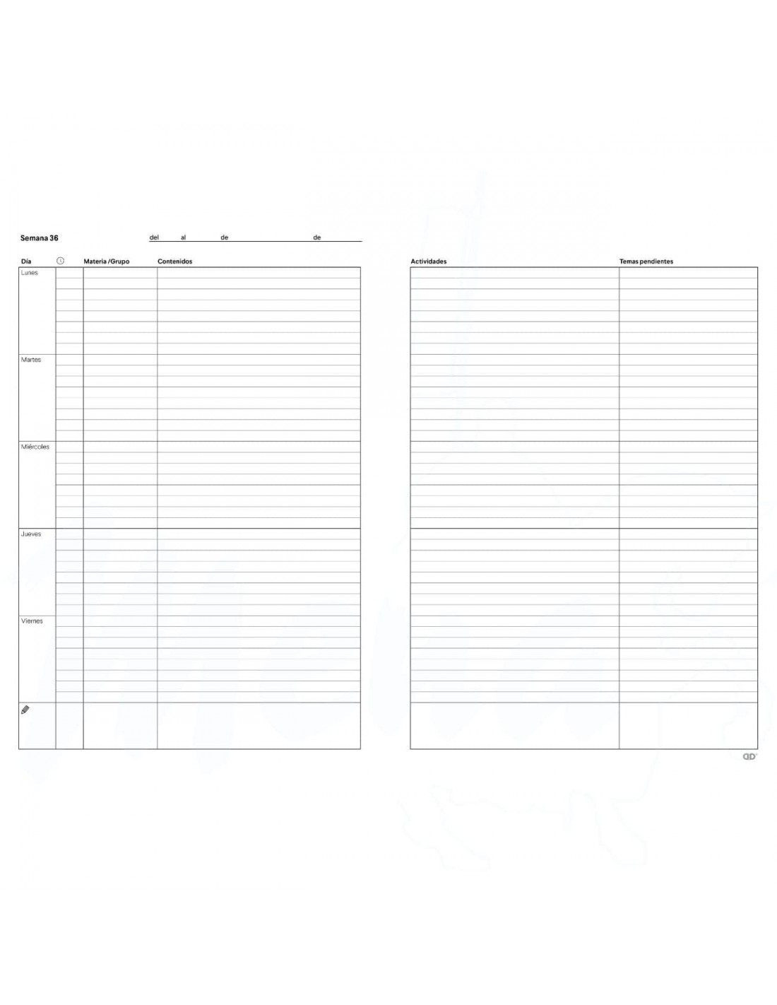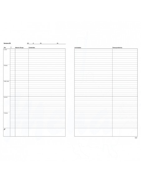Cuaderno planificador semanal por grupos o por asignaturas.
