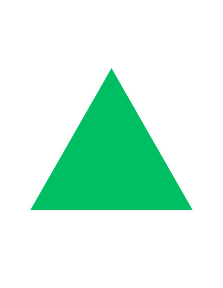 Rollo gomets triángulos de 15x15x15 mm acharolados verde.