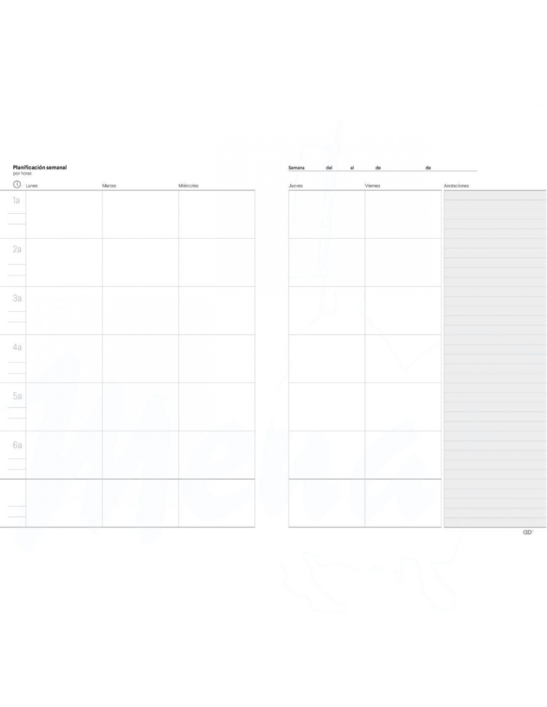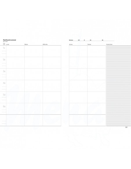 Cuaderno planificación semanal por día y hora.