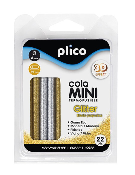 Blister con 22 barras de cola adhesiva efecto purpurina.