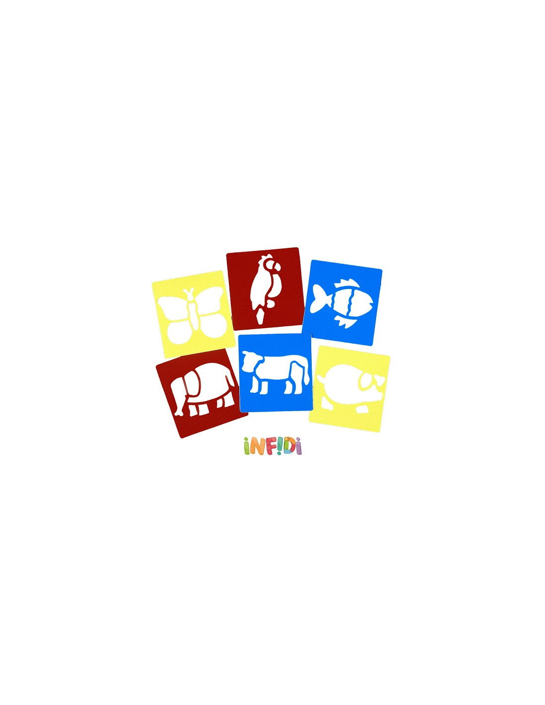 Pack de 6 plantillas con forma de: Mariposa, Loro, Pez, Elefante, Vaca y Cerdo.