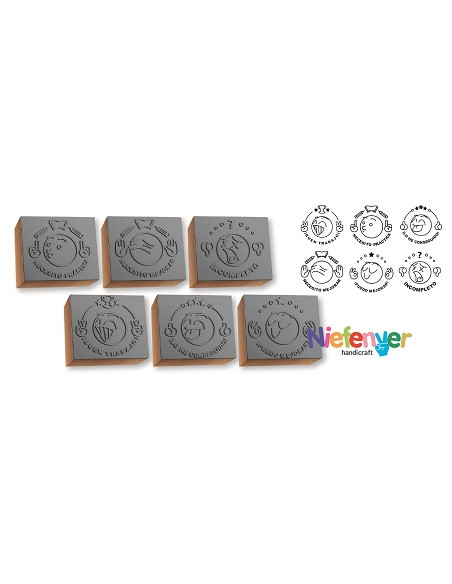 Sellos de motivación con dibujos de emoticonos. Fabricados en caucho y madera. TAMAÑO 3 x 3,5 cm. Pack 6 unidades