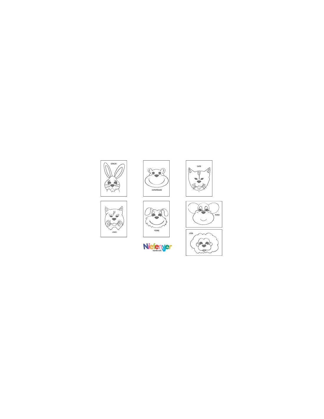Divertidas siluetas para realizar caretas de animales Incluye gomas para realizar divertidas caretas. MEDIDA 297 x 210 mm. Bolsa 14 caretas