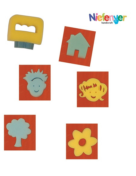 Sellos esponja con divertidos dibujos. Fabricados es su totalidad en esponja. Mango integrado en el sello en un pieza, lo que facilita el manejo. MEDIDA 75 x 80 mm. Pack 5 unidades.