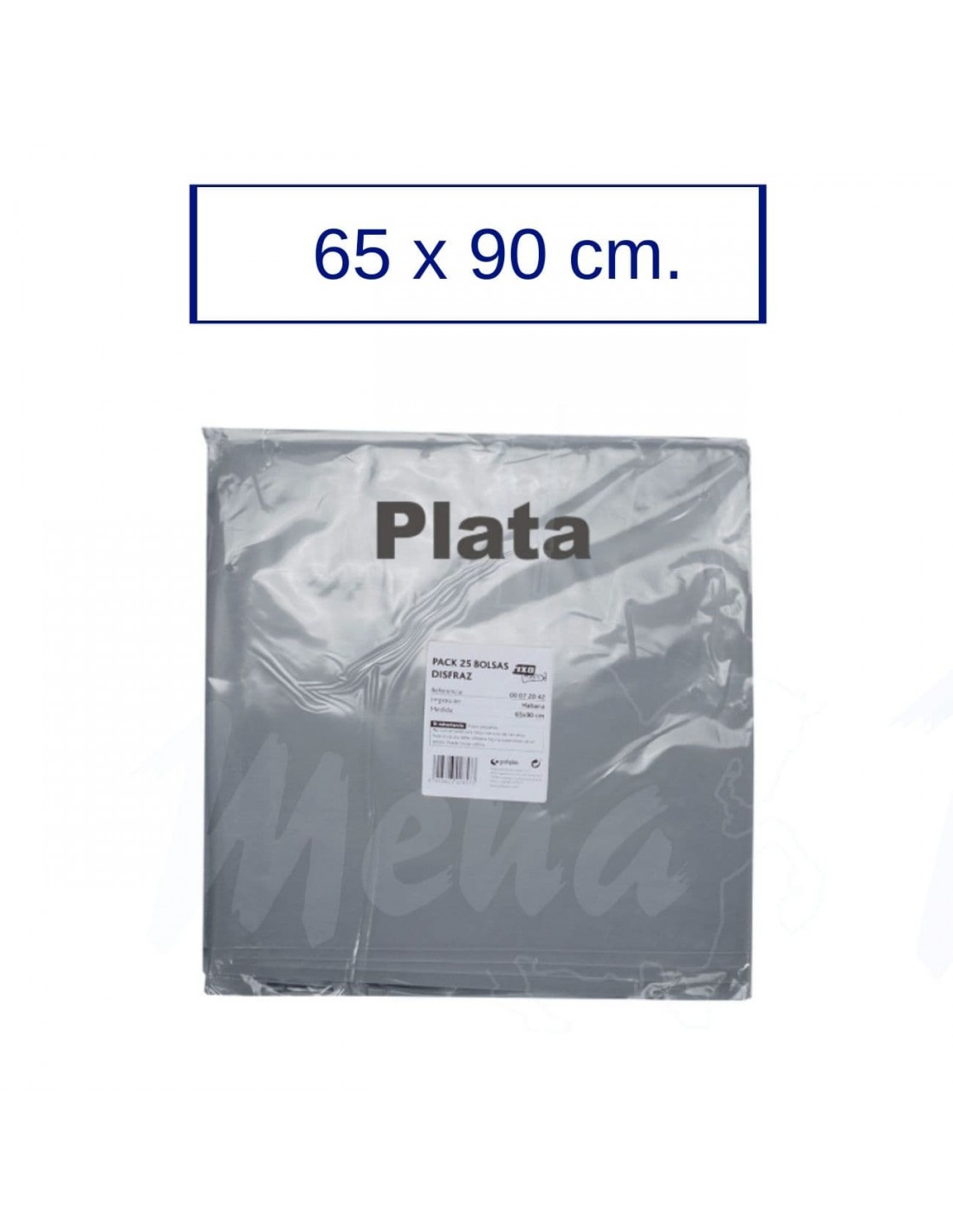 Bolsa de plástico para realizar disfraces. MEDIDA 65 x 90 cm. Color plata Pack 25 unidades