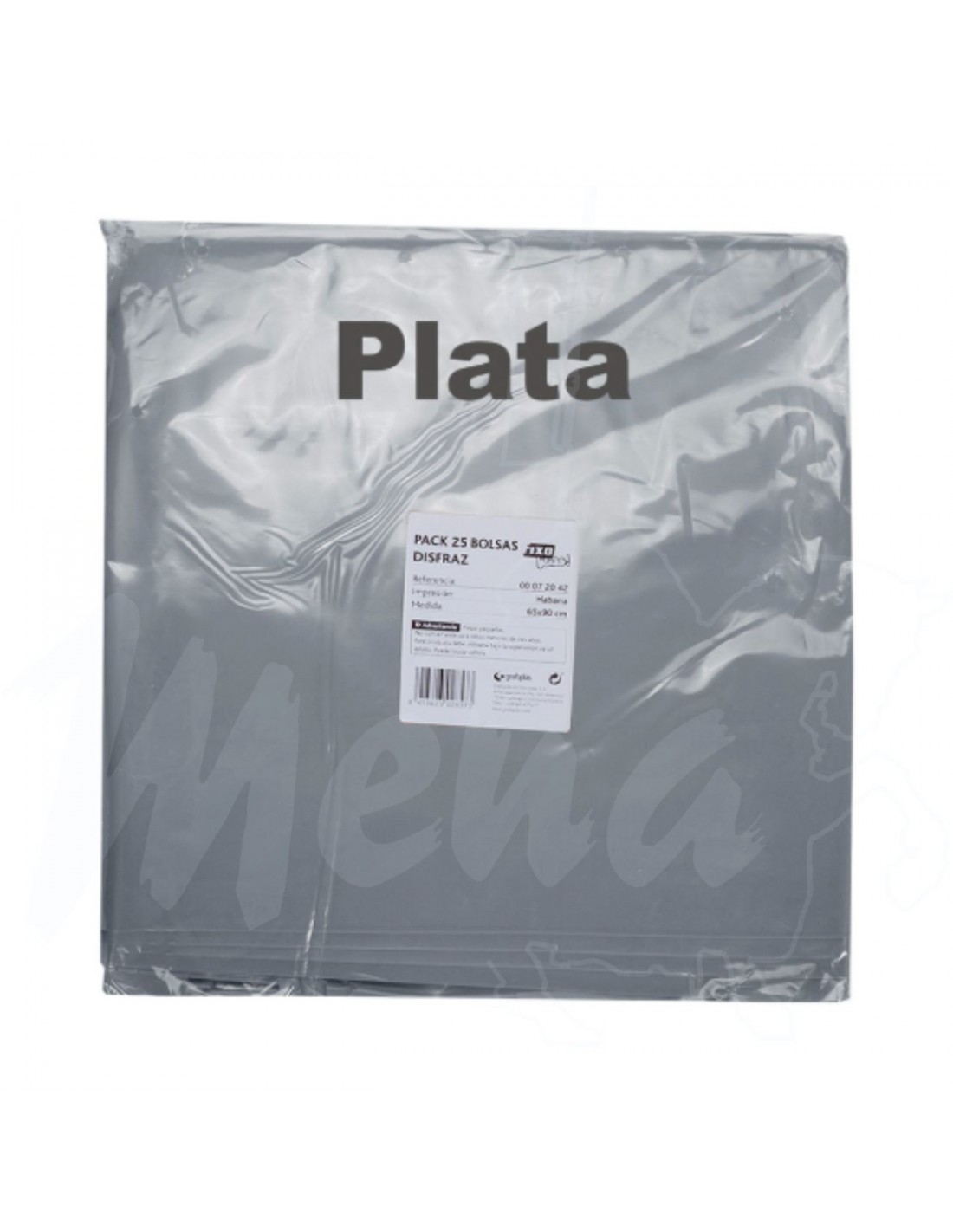 Bolsa de plástico para realizar disfraces. MEDIDA 65 x 90 cm. Color plata Pack 25 unidades