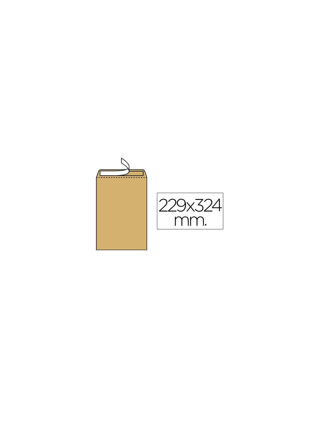 Sobre tipo bolsa en formato folio C4 con cierre autoadhesivo tira silicona. MEDIDA 229 x 324 mm. CAJA 250 uds. COLOR Kraft