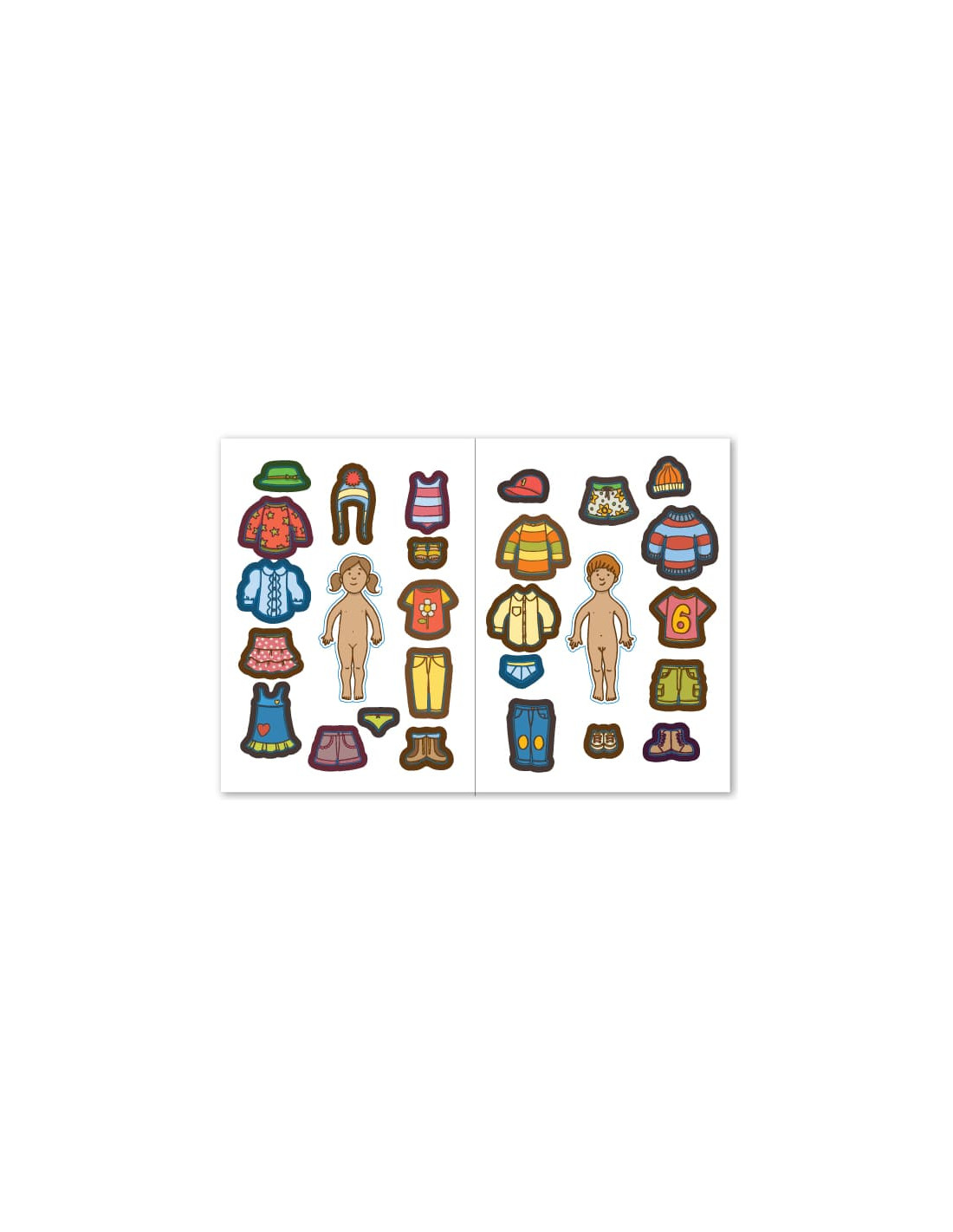 Sobre con 2 hojas de gometes temáticos removibles. Incluye adhesivos para vestir a niñas y niños.