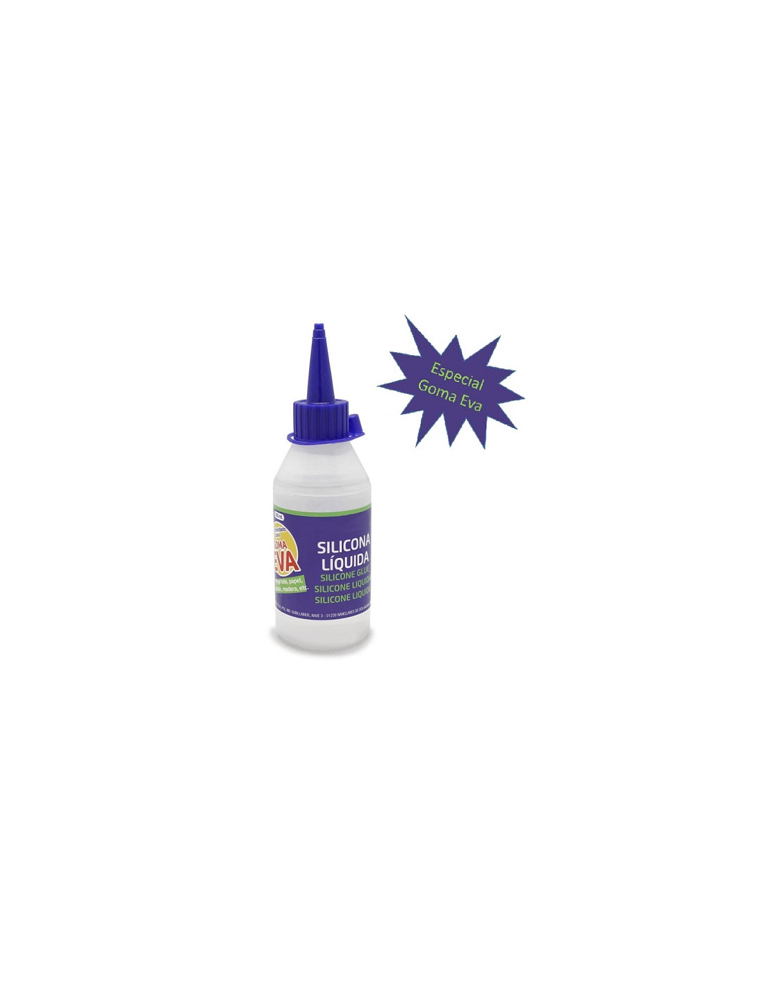 Pegamento silicona liquida botella de 100 ml. Adhesivo ecológico base al agua. Indicado para papel, plástico, madera, ropa, metales, cuero, Goma Eva, etc… Tapón con práctico dosificador. no tóxico. Ideal para uso infantil.