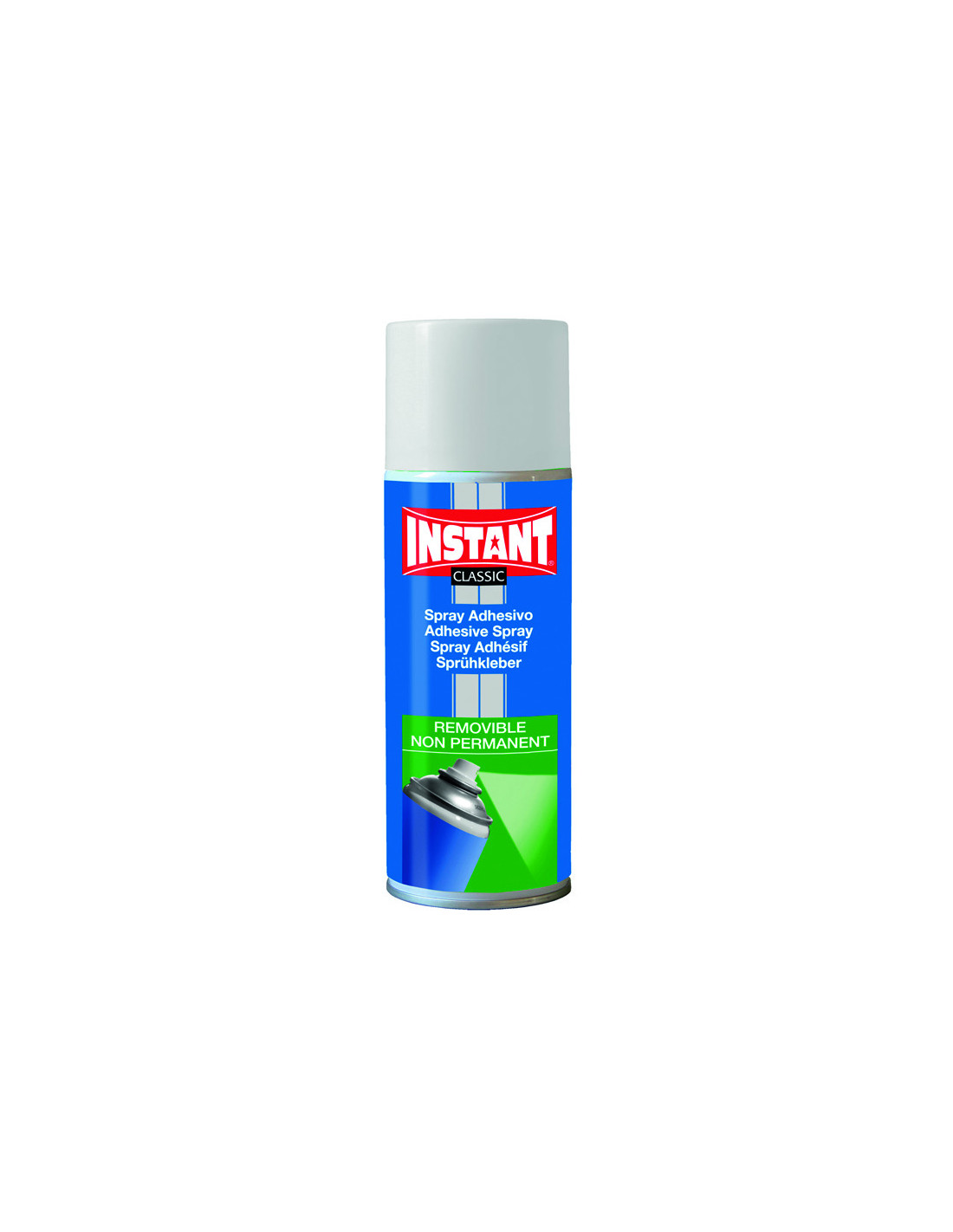 Bote 400 ml spray adhesivo REMOVIBLE, no permamente. Adhesivo rápido y eficaz para la fijación de materiales ligeros. Puede pegarse y despegarse antes de su fijación permanente.