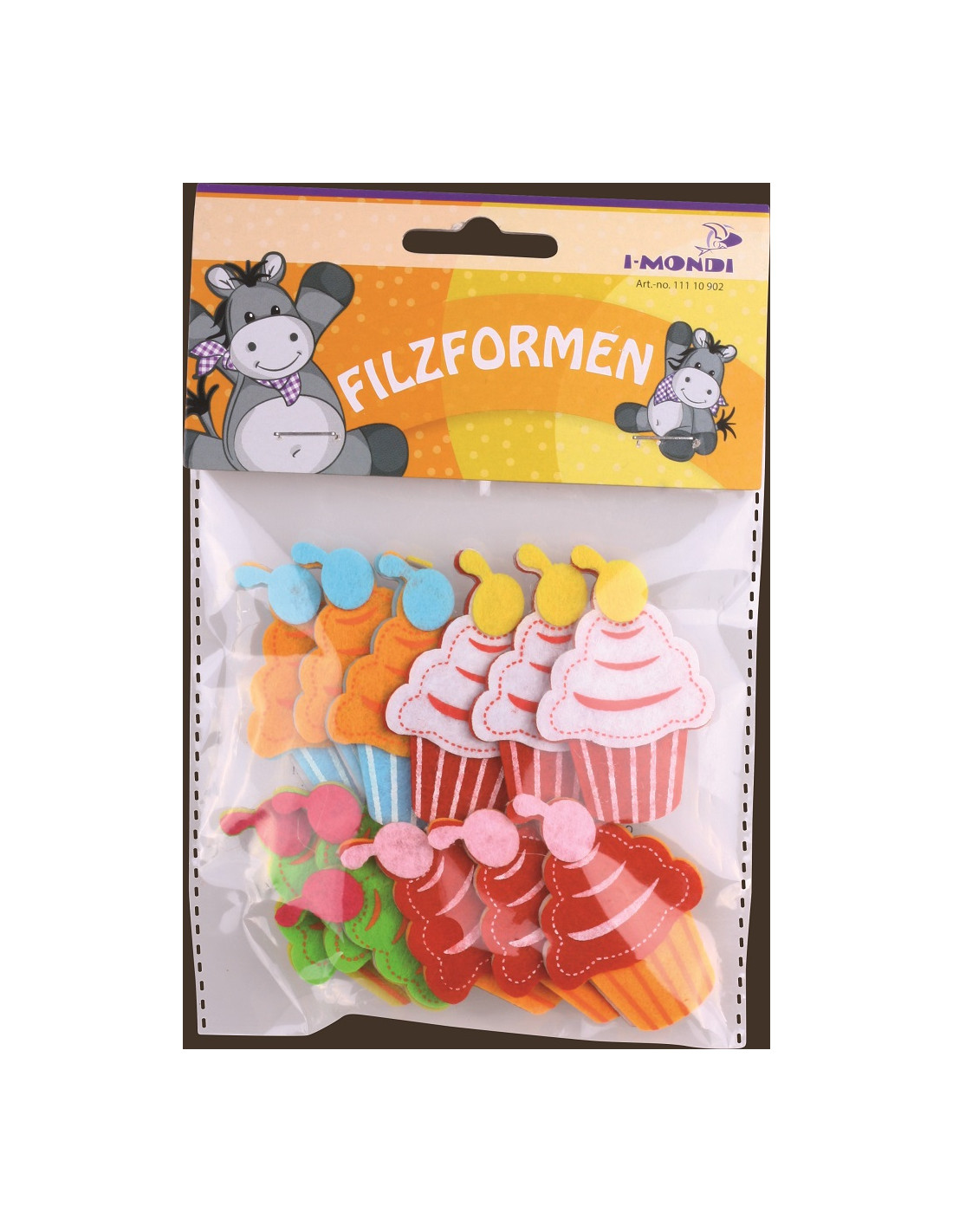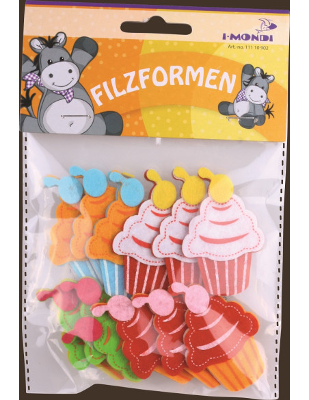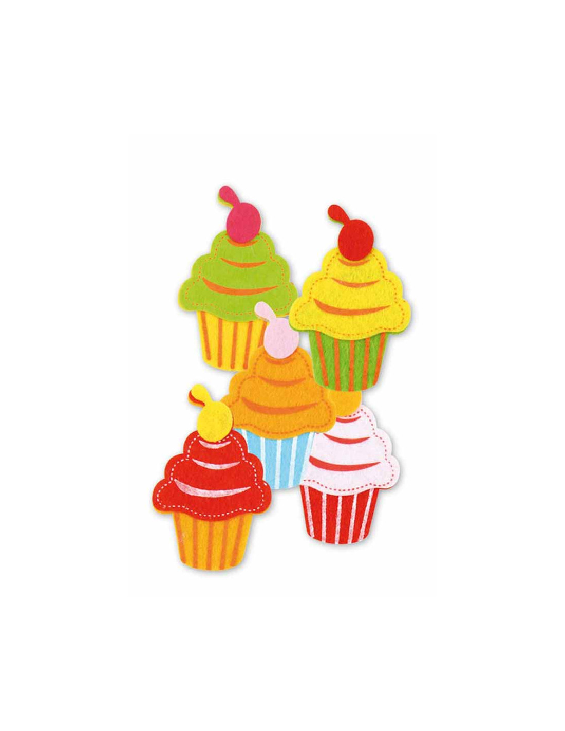 Bolsas con 12 figuras adhesivas de fieltro 3D con forma de PASTELES. Colores Surtidos Tamaño 40x60 mm