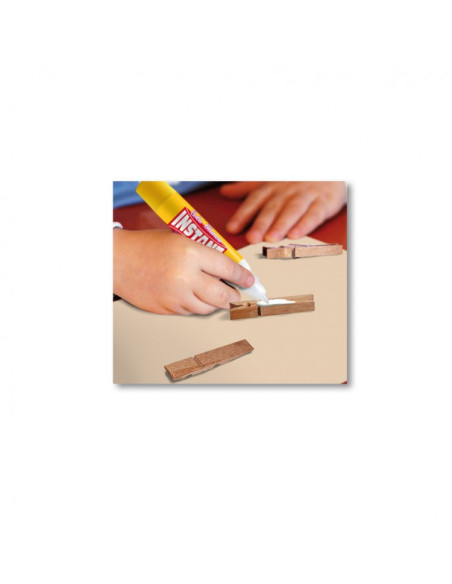 Ideal para pegar todo tipo de materiales siempre que uno de ellos sea poroso: papel, cartulina, cartón, madera, tejidos, goma, etc.