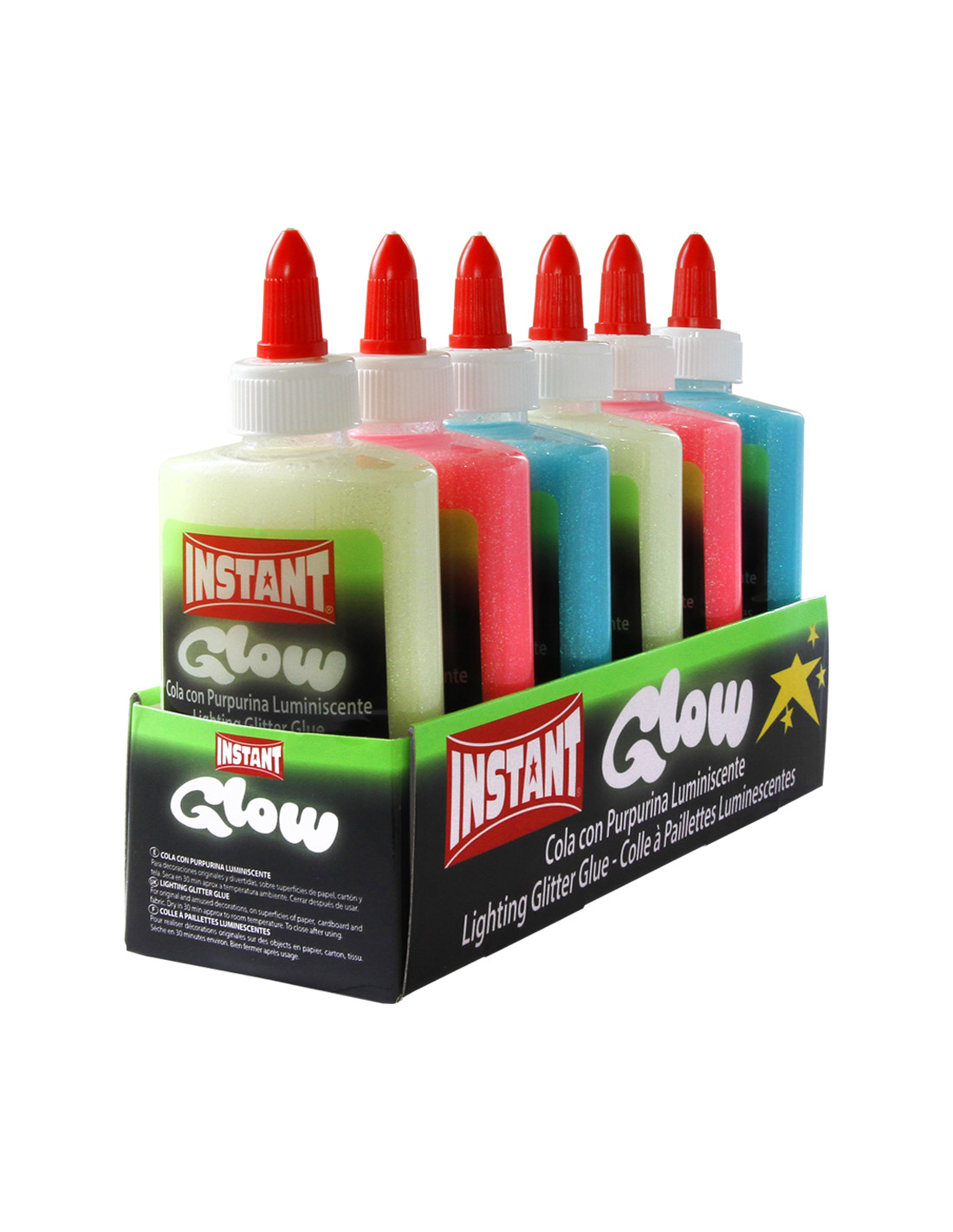 Cola con purpurina luminiscente para decoraciones originales y divertidas, sobre superficies de papel, etc.