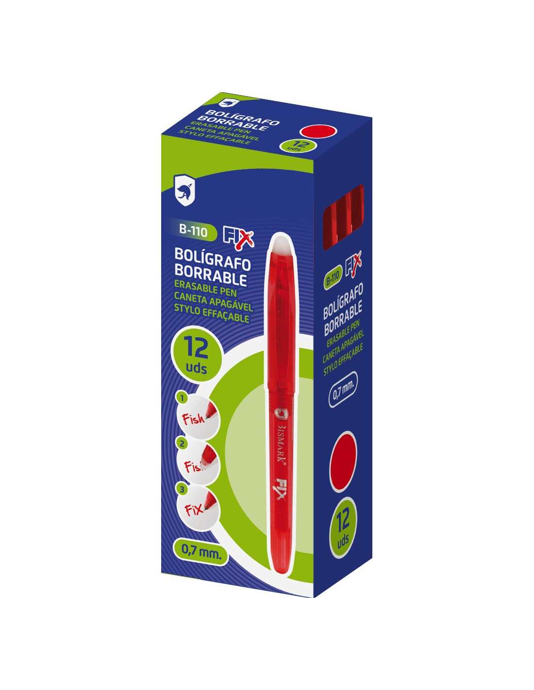 Bolígrafo borrable FIX B-110 en color rojo. Bolígrafo con tinta borrable y con goma incorporada muy resistente. Trazo 0´7 mm.