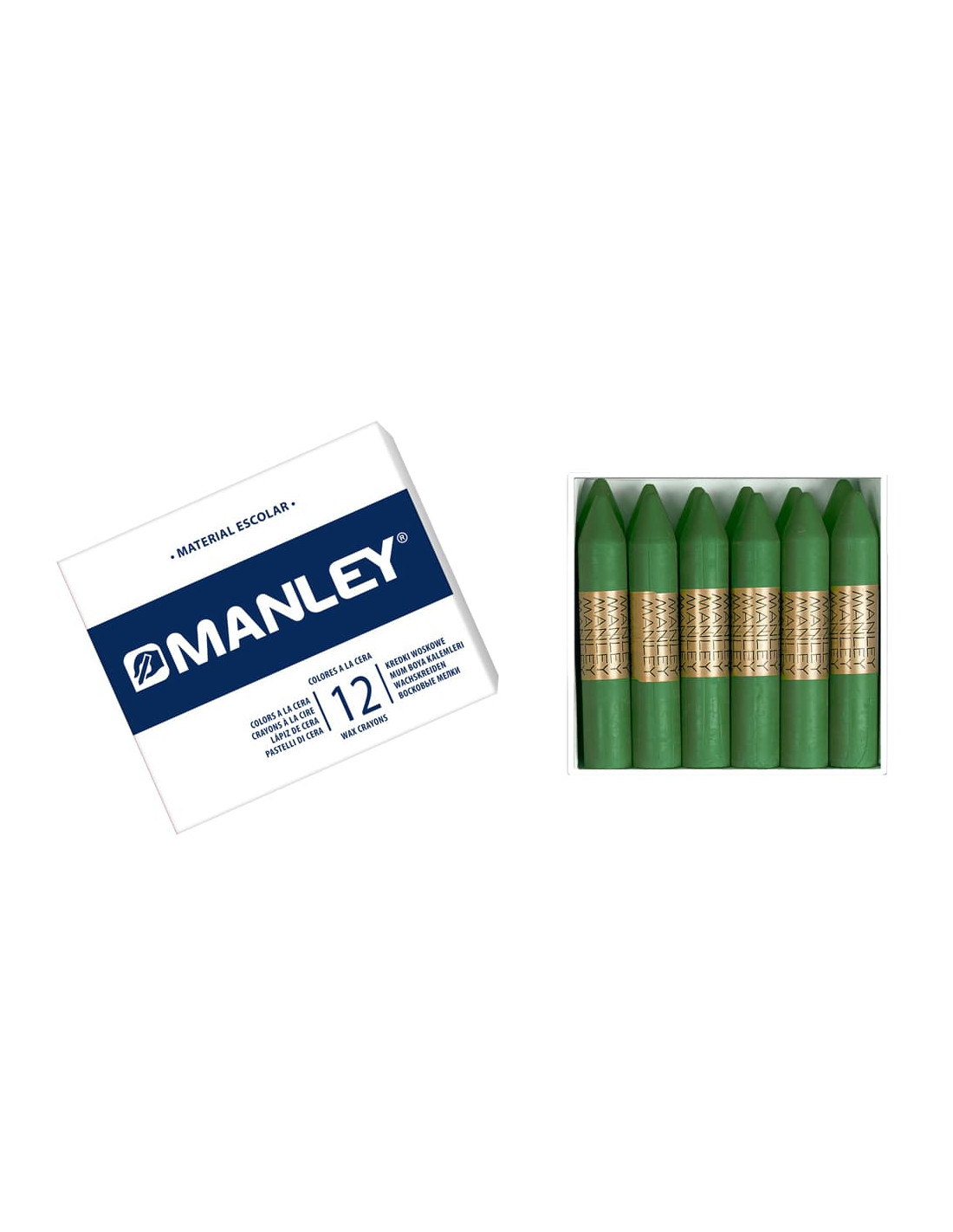 Caja con 12 ceras redondas MANLEY unicolor VERDE MATURAL (21).