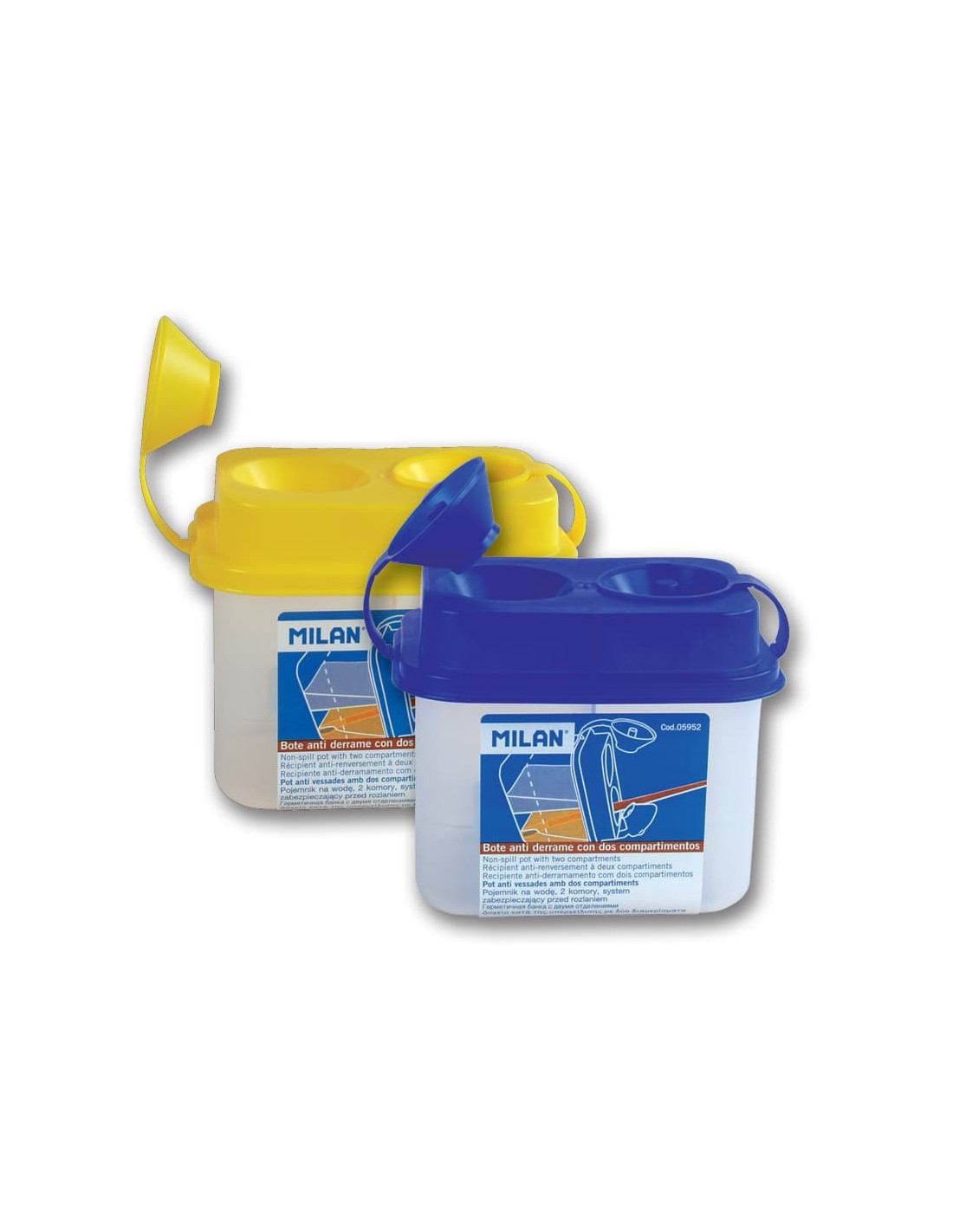 Bote antiderrame con dos compartimentos. Fabricado en polipropileno resistente e irrompible. Medida 65 x 85 x 55 mm.