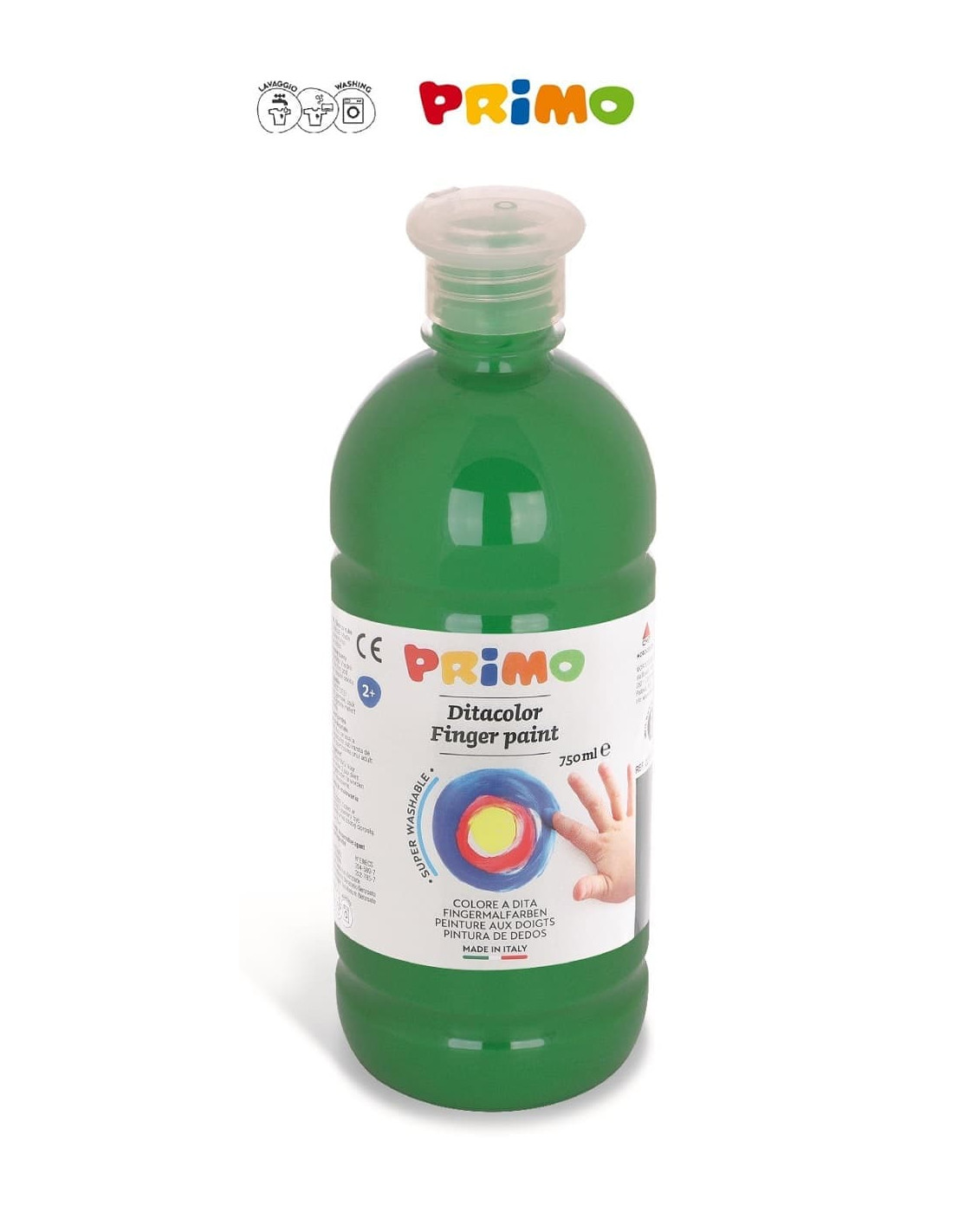Pintura de dedos con tapa dosificadora lista para ser usada.