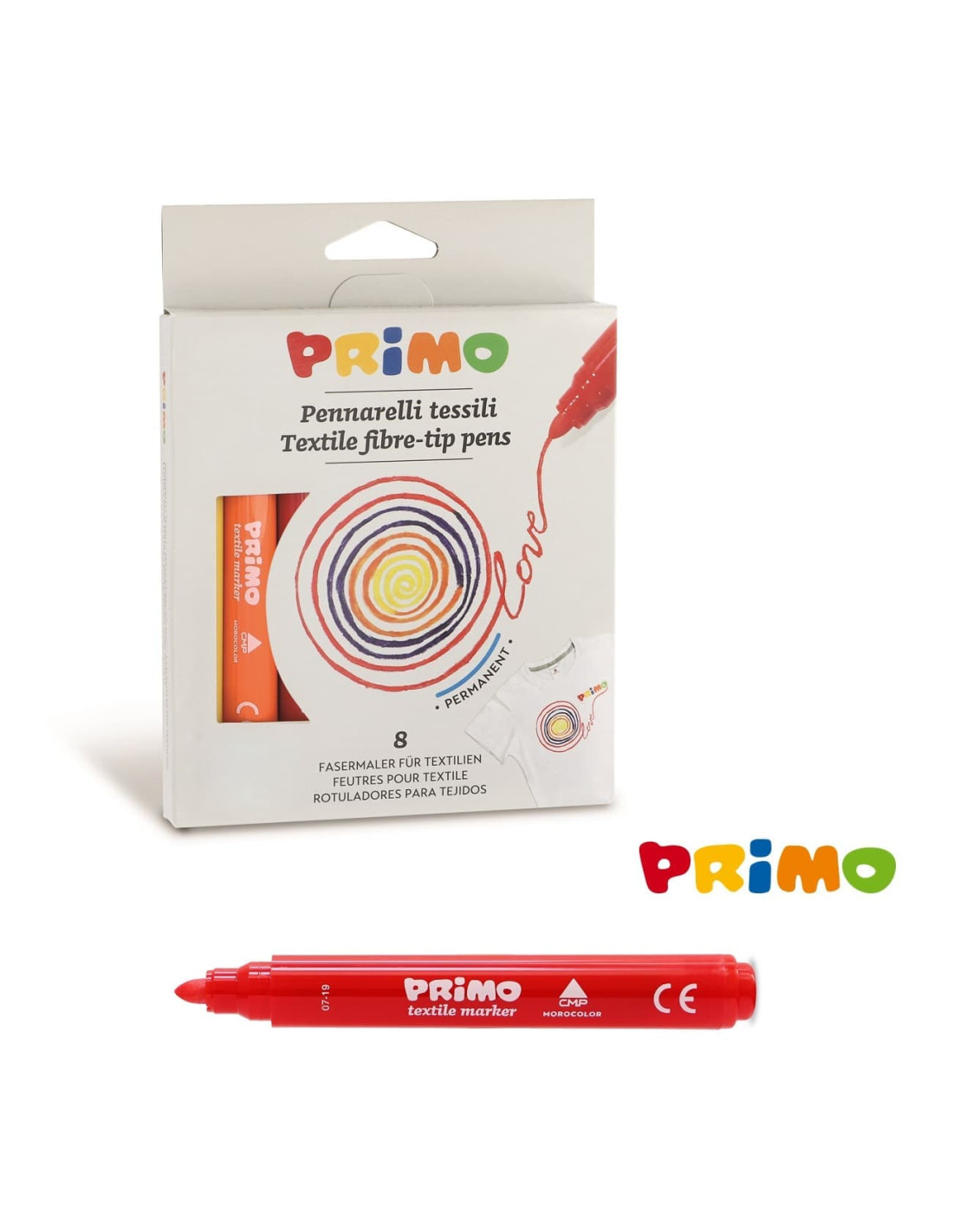 Estuche con 8 rotuladores textiles fáciles de aplicar.