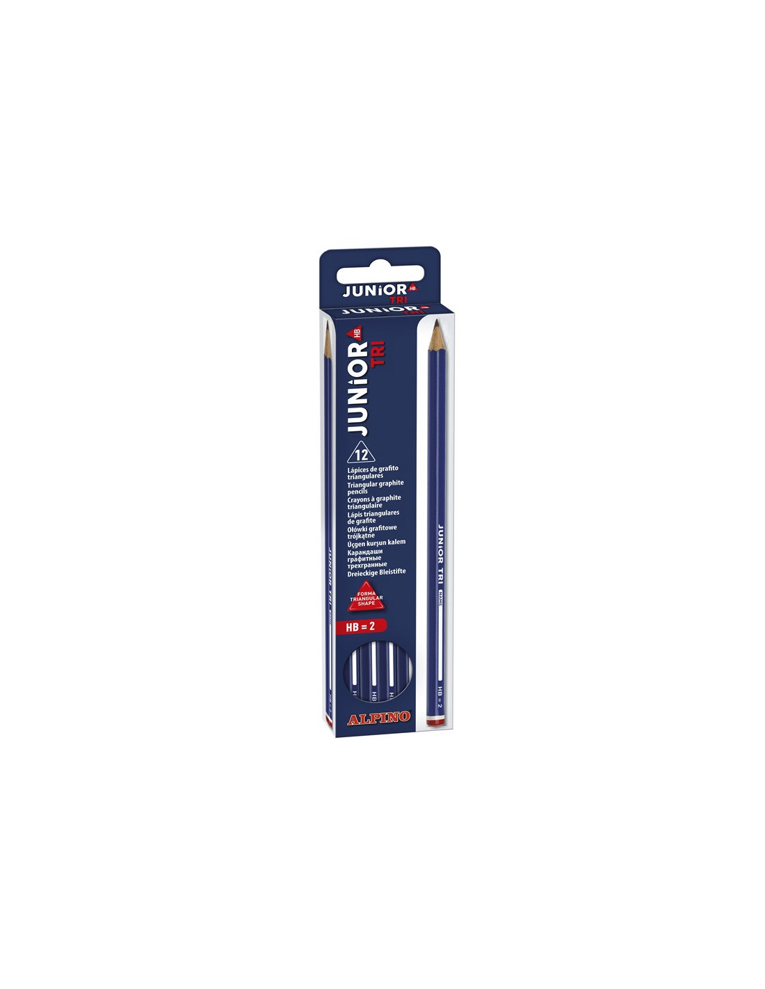 Blister con 12 lápices de grafito con dureza HB. Lápiz con cuerpo triangular, con mina de 2.2 mm. Dispone de un espacio en blanco para personalizar.