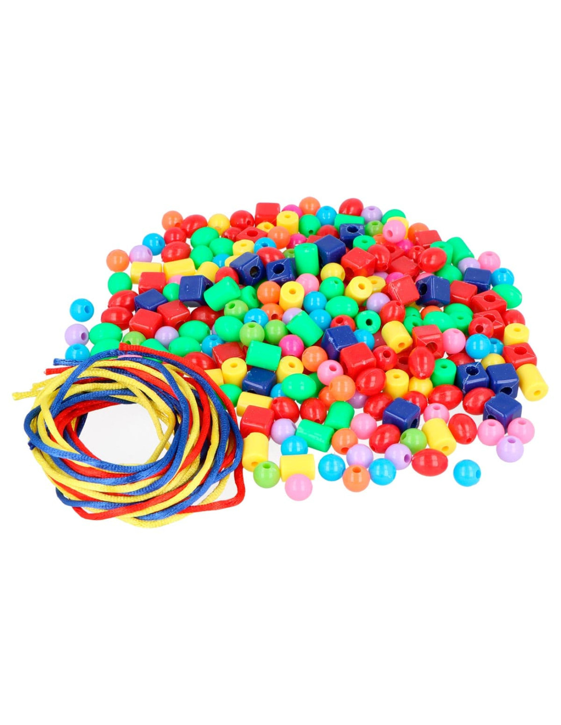 Abalorios de plástico de diferentes formas y colores con 6 hilos. Colores opacos Medida 10 mm. Cantidad 650 ud. Aprox.