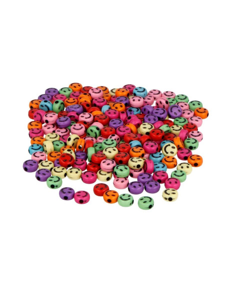 Cuentas pequeñas de forma redonda con caras sonrientes de colores surtidos Ideal para crear divertidas creaciones.