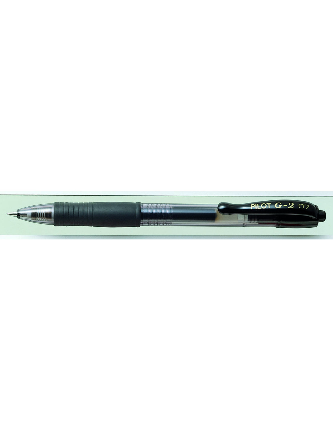 Bolígrafo retráctil PILOT G-2 con tinta de gel pigmentada.