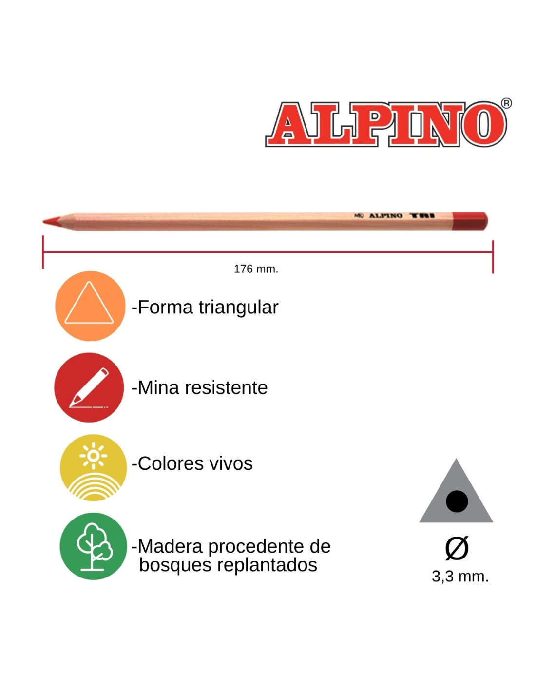 Lápiz triangular fino de excelente calidad, con mina de