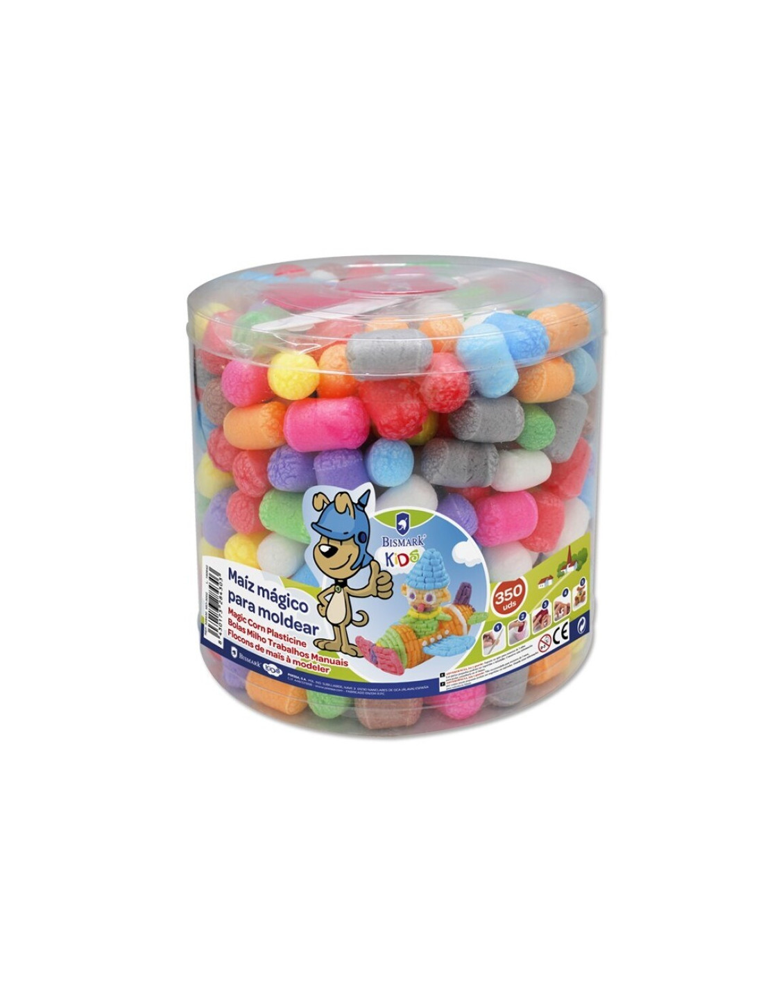 Maiz mágico para modear, cuando se mojan se unen entre ellos. Se pueden cortar, pegar... Contiene 350 piezas. Edad recomendada +3 años.