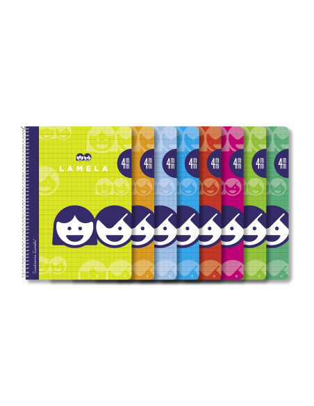 Cuaderno Lamela 4 con espiral y cubierta de cartón plastificado.