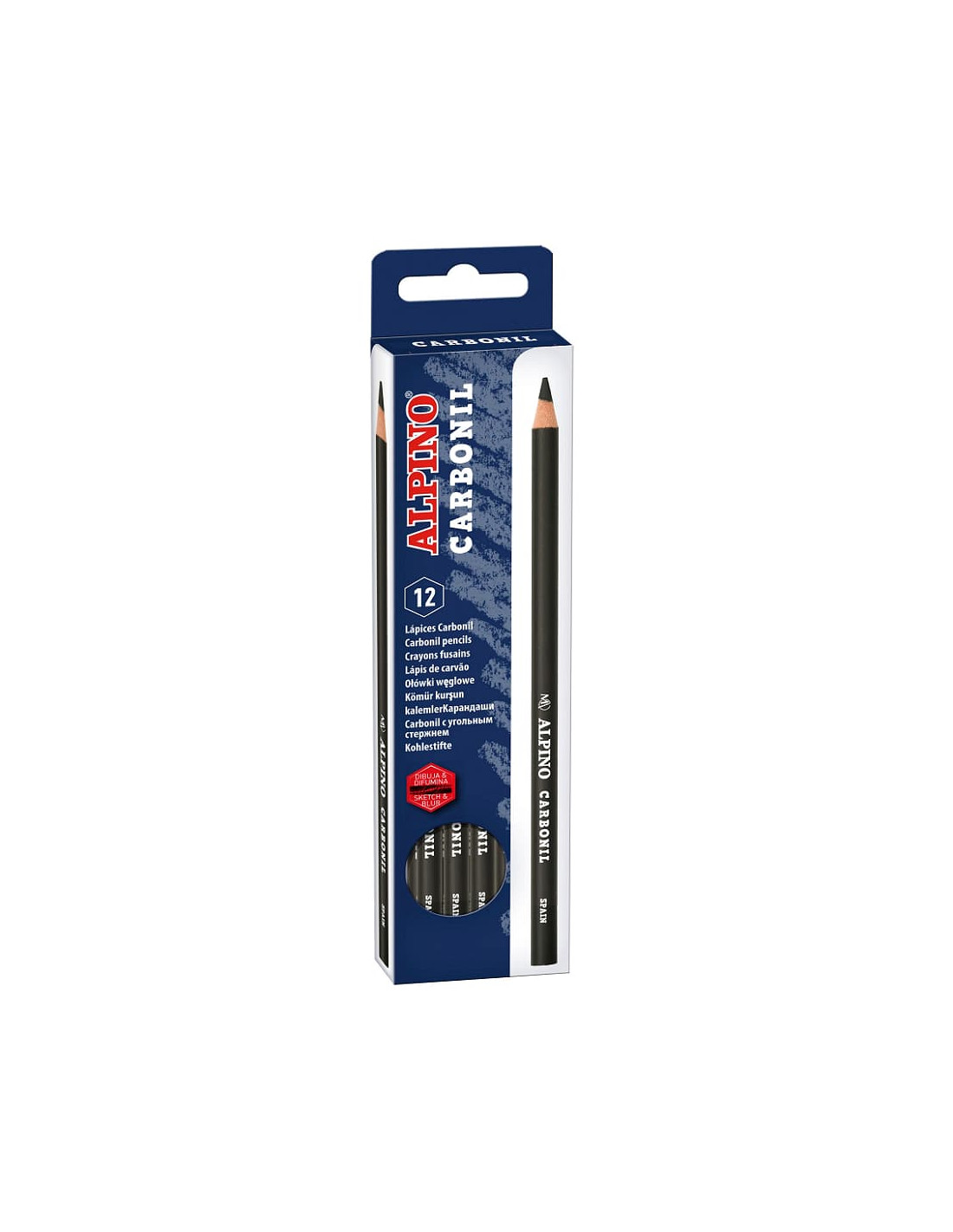 Caja con 12 lápices de carboncillo ALPINO CARBONIL. Lápiz con mina de carboncillo para realizar bocetos y dibujos. Lápiz con cuerpo redondo 7.4 mm. Mina 4 mm.
