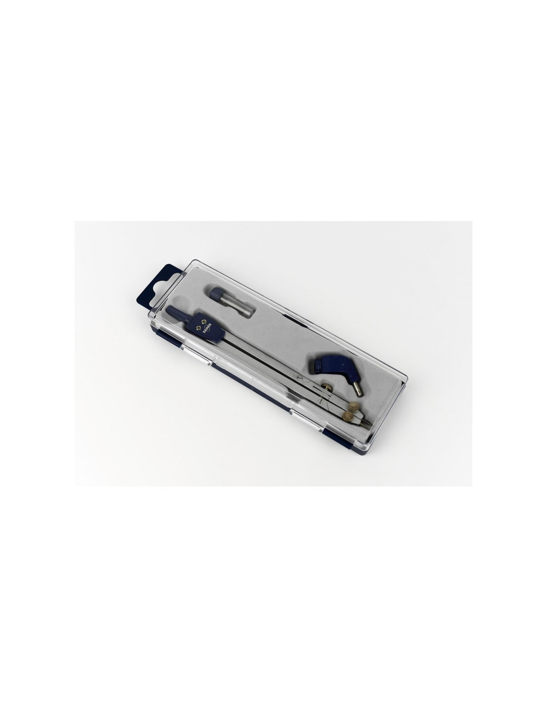 Compás básico escolar en estuche de plástico. Incluye tubo de minas y adaptador universal. Patas dobles articuladas y aguja intercambiable. Apto para uso escolar.