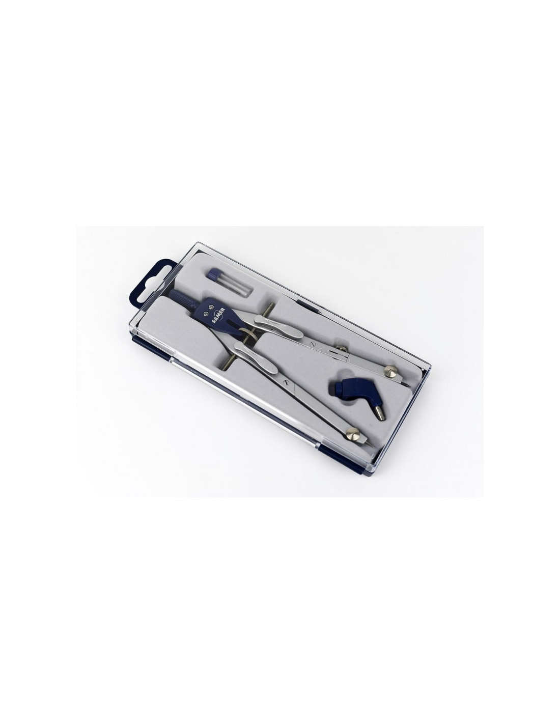 Bigotera escolar en estuche de plástico. Compás de precisión con rueda central. Incluye tubo de minas y adaptador universal. Patas dobles articuladas y aguja intercambiable.