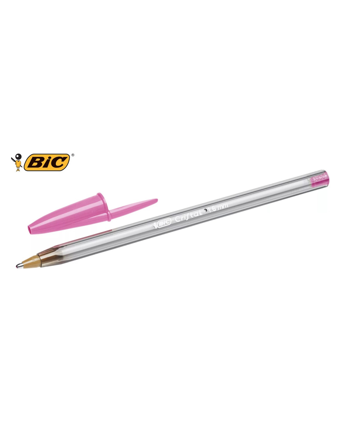Bolígrafo BIC CRISTAL FUN color ROSA Cuerpo transparente con tapón y capuchón de seguridad ventilado. Tinta base aceite. 3000 m. longitud media de escritura. Punta 1,6 mm, trazo 0,42 mm. Producto certificado con etiqueta ecológica NF Environmet.