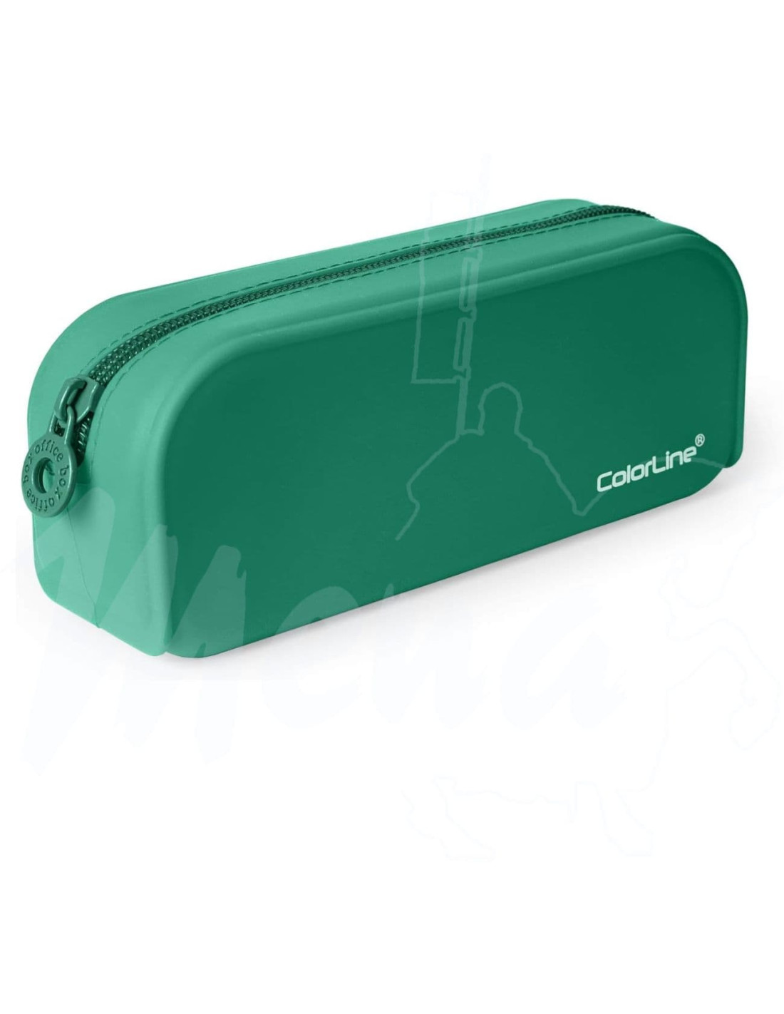 Portatodo de silicona de taco suave.Colores de gran resistencia con acabado mate ultrasoft muy agradable al tacto.Formato redondo.Ideal para uso escolar.Resistente al agua y fácil de limpiar.Cierre con cremallera de gran duración y resistencia.Silicona de alta calidad no tóxica y libre de BPA y BPS.Medida 18 x 7 x 3 cm.Cantidad 4 estuches en color verde oscuro.
